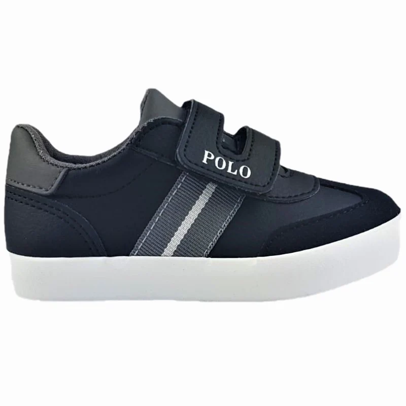 Scarpa RALPH LAUREN in ecopelle con chiusura velcro fodera e morbido sottopiede in tessuto fondo leggero in gomma antiscivolo logo laterale con inserto in tessuto a contrasto.