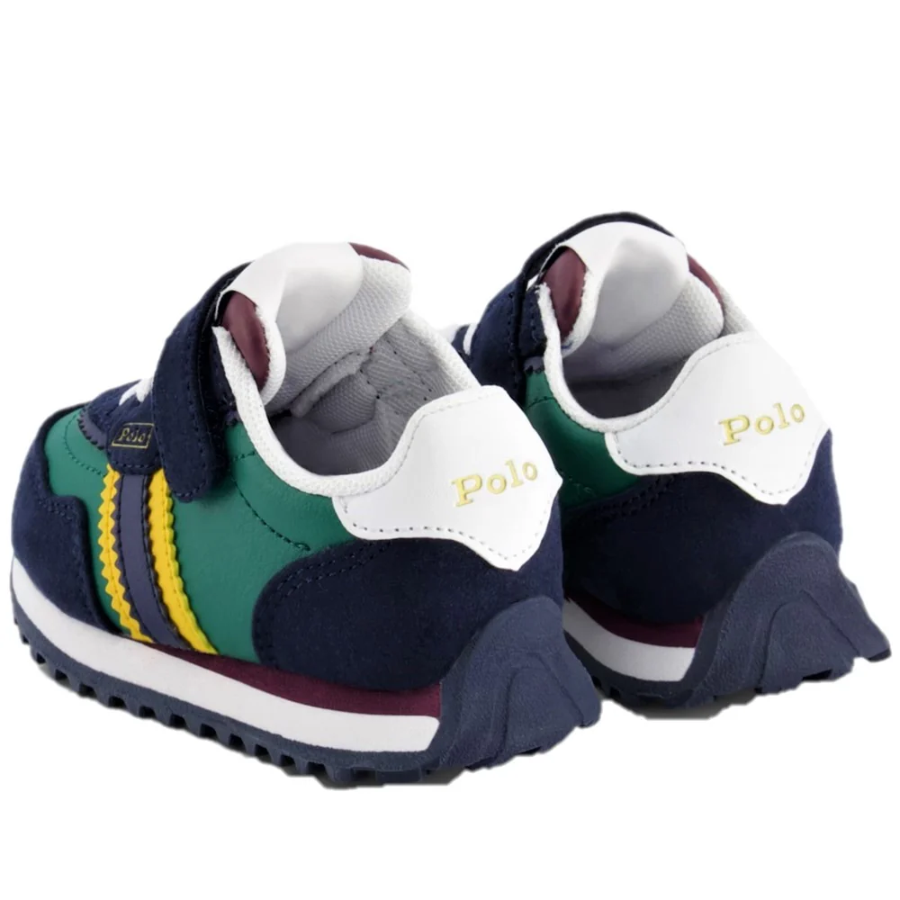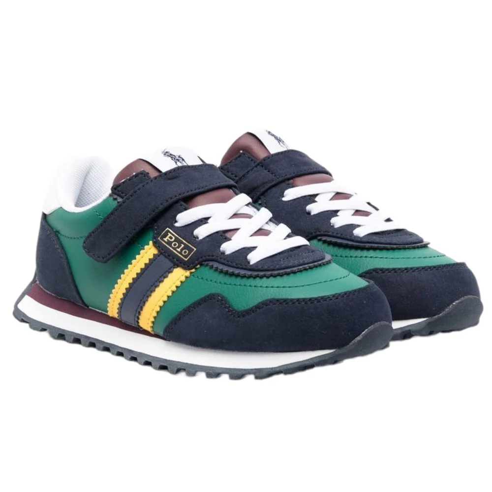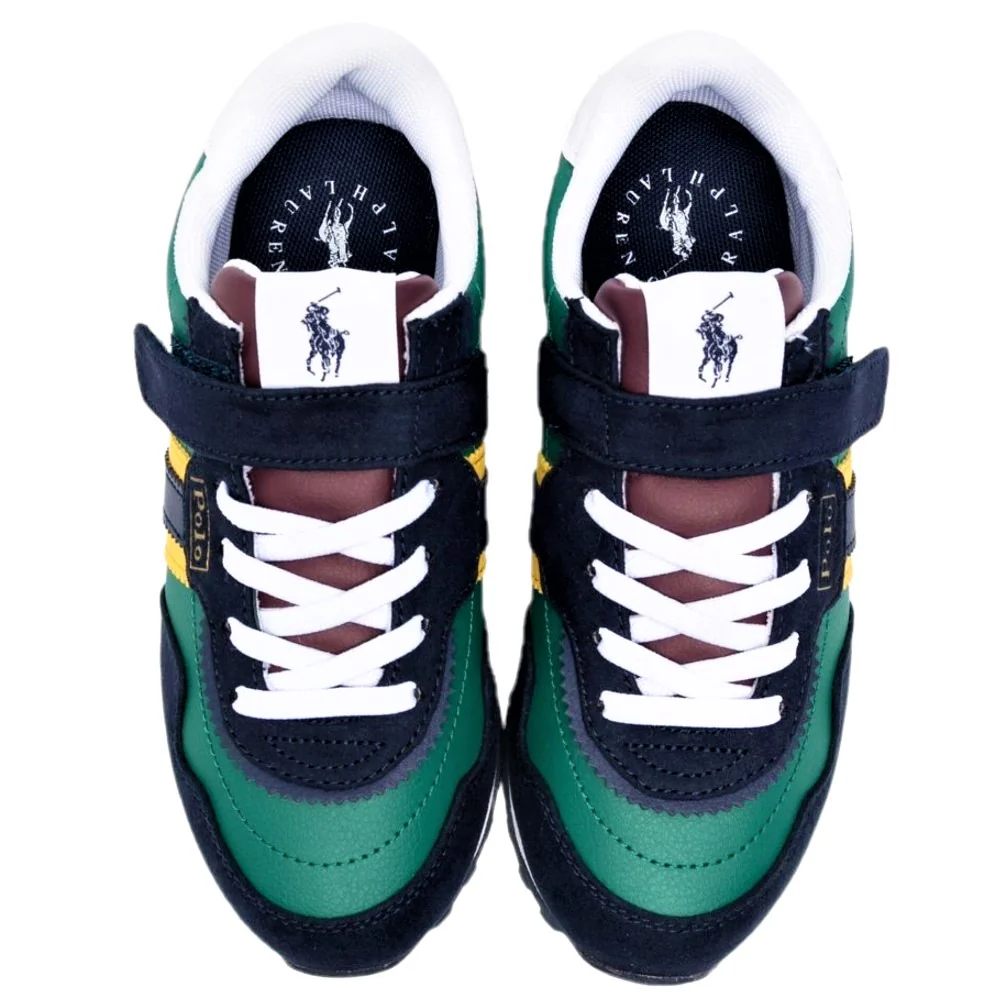 Scarpa RALPH LAUREN in vera pelle con inserto in tessuto a contrasto chiusura velcro e laccio elastico fodera e sottopiede in tessuto leggero fondo in gomma antiscivolo .