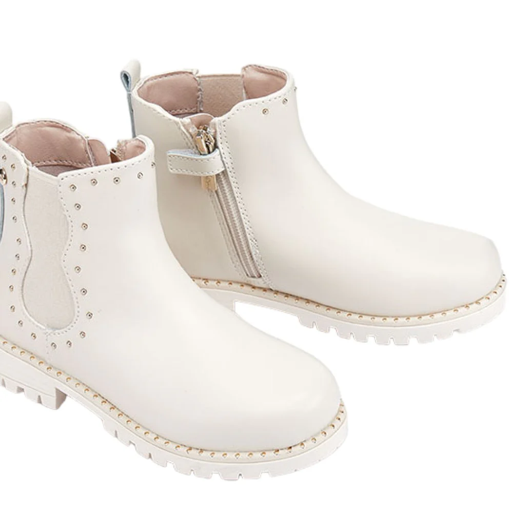 Scarpa MAYORAL in vera pelle con inserto elastico laterale strass applicati fodera e sottopiede in tessuto chiusura con zip laterali fondo in gomma antiscivolo.