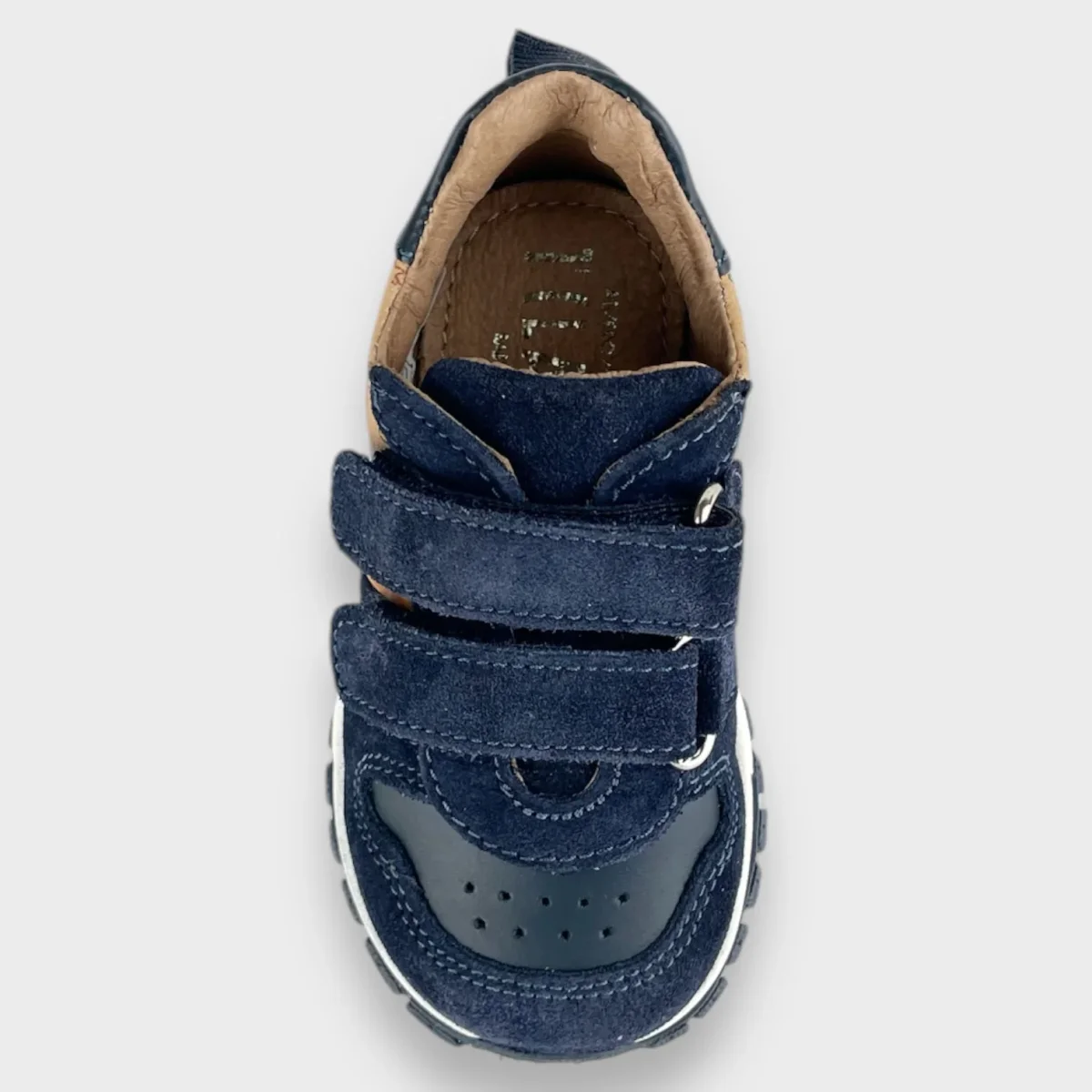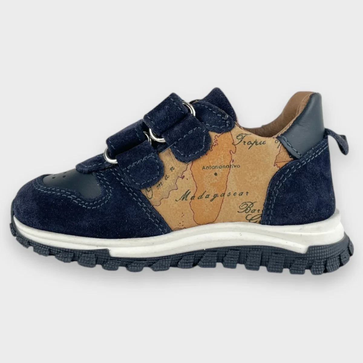 Scarpe Alviero Martini 1 Classe con inserti a fantasia istituzionale, chiusura con doppio velcro. sottopiede in vera pelle. fondo in gomma antiscivolo.