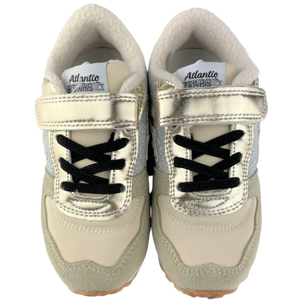 Scarpe ATLANTIC STARS chiusura con velcro e lacci elastici sottopiede in vera pelle fondo in gomma antiscivolo. logo star laterale multicolor.
