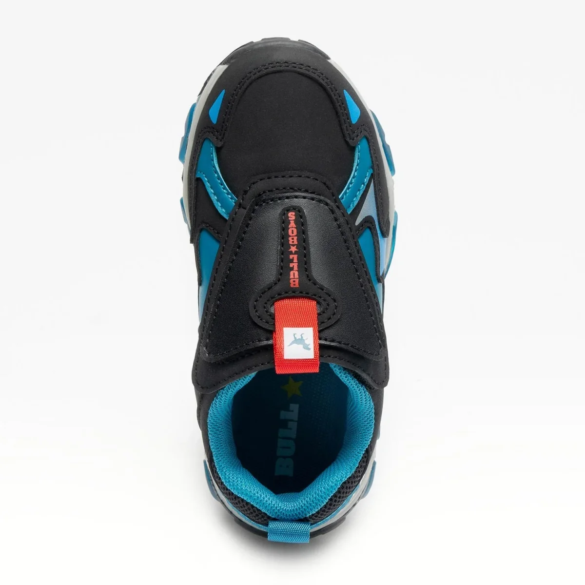 Scarpe BULL BOYS t-rex con luci che si attivano a contatto con il suolo, impronta sul fondo, linguette intercambiabili con velcro.