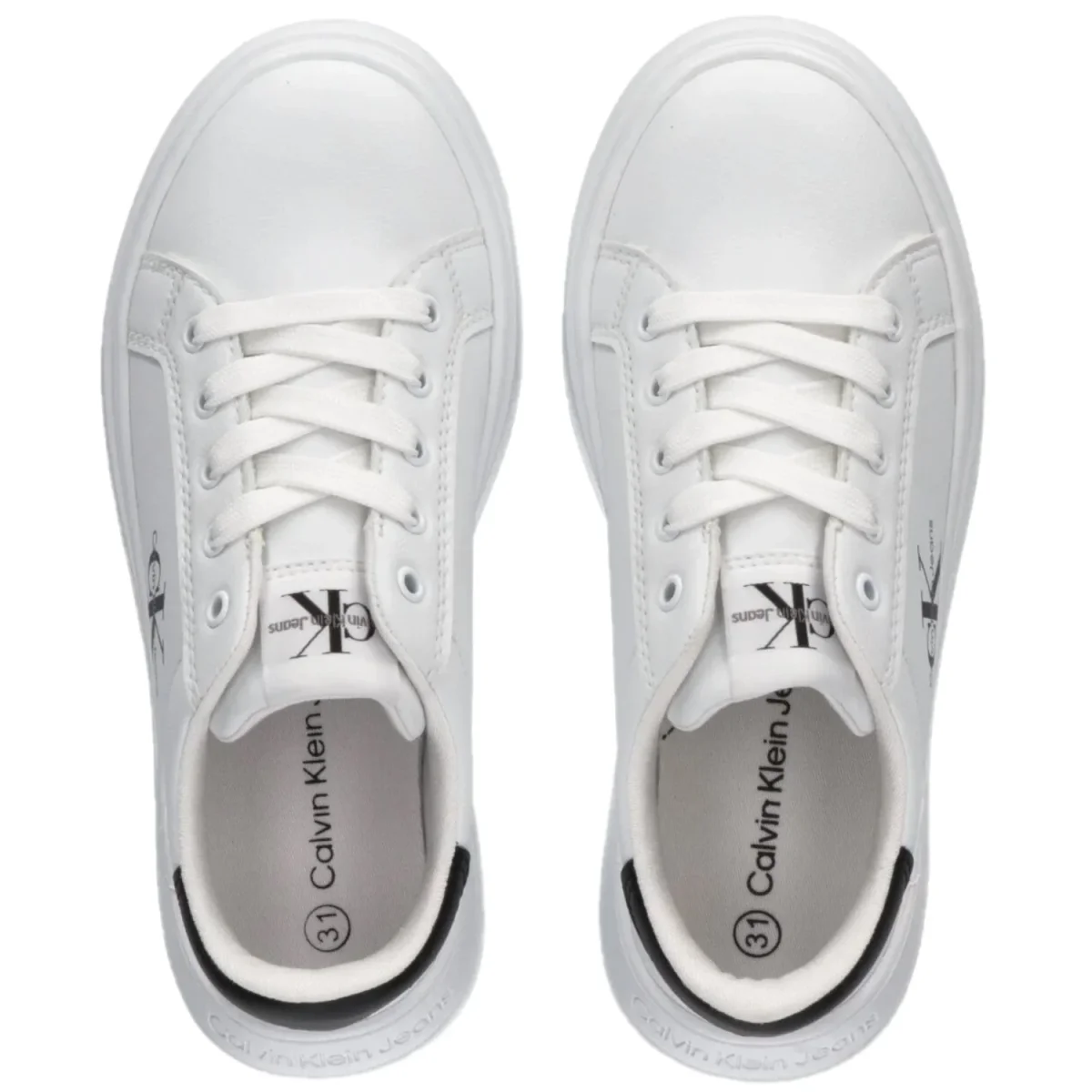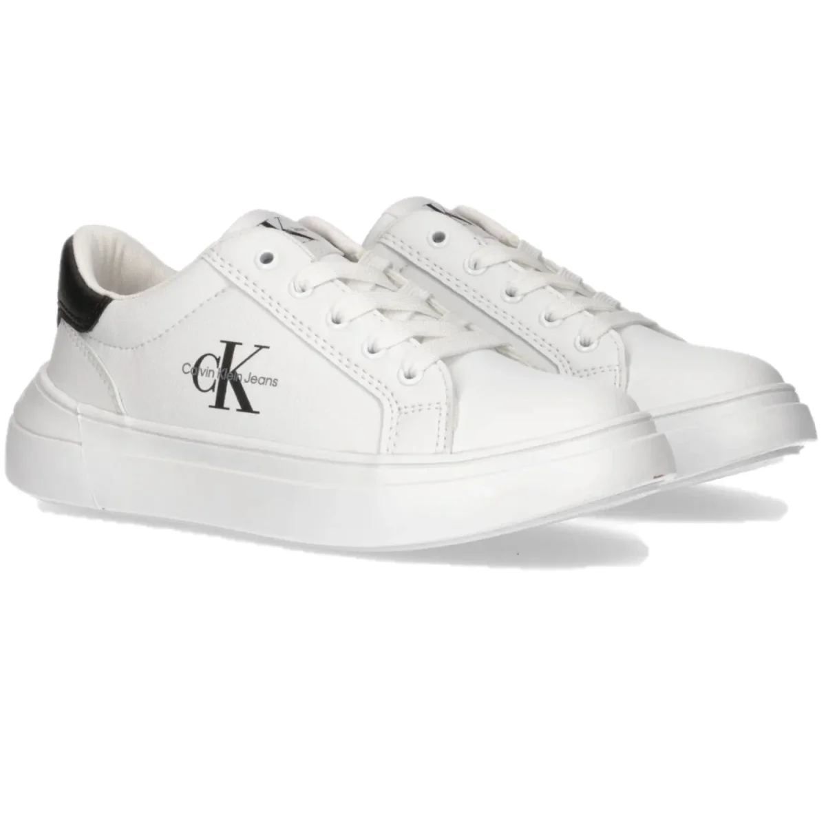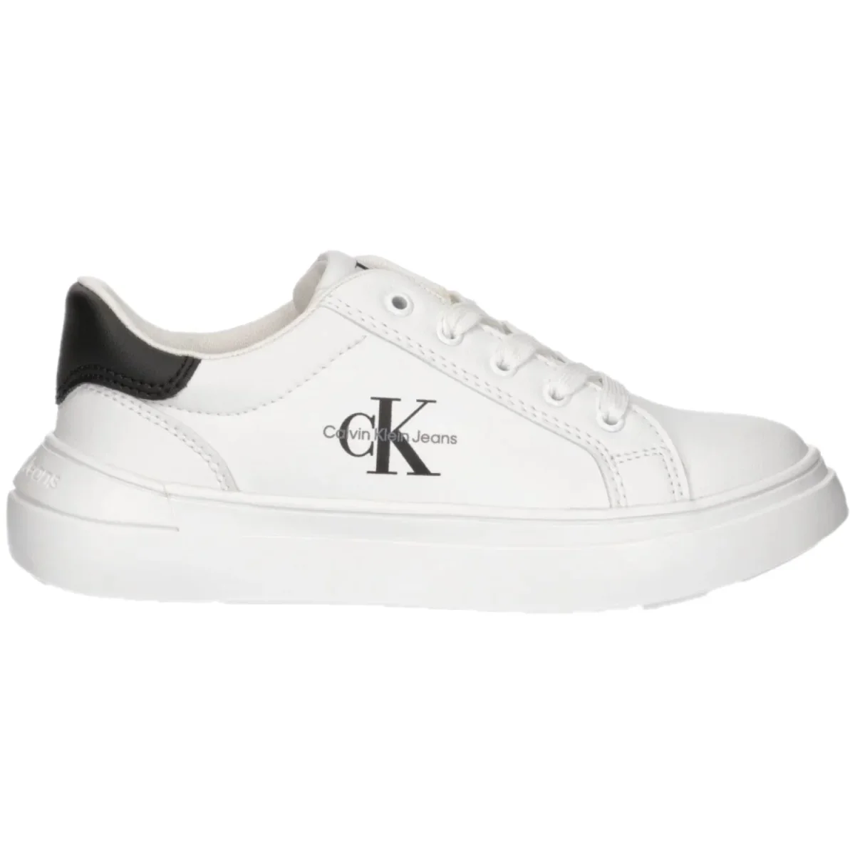 Scarpe CALVIN KLEIN bianche chiusura con lacci, rifiniture in colore a contrasto nero. fondo in gomma antiscivolo.