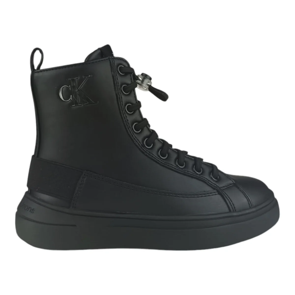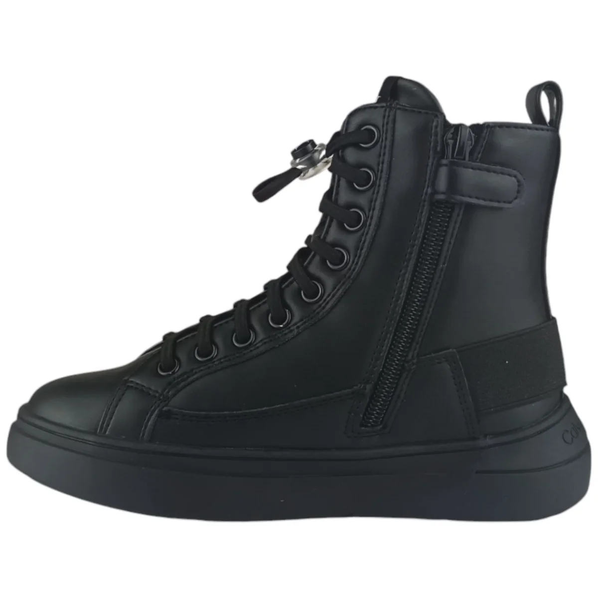 Scarpe CALVIN KLEIN in ecopelle, chiusura con lacci elastici che si regolano con cursore a pressione logato, zip laterale per facilitare la calzata, logo laterale a contrasto, inserto elastico al tallone, fondo leggero in gomma antiscivolo.