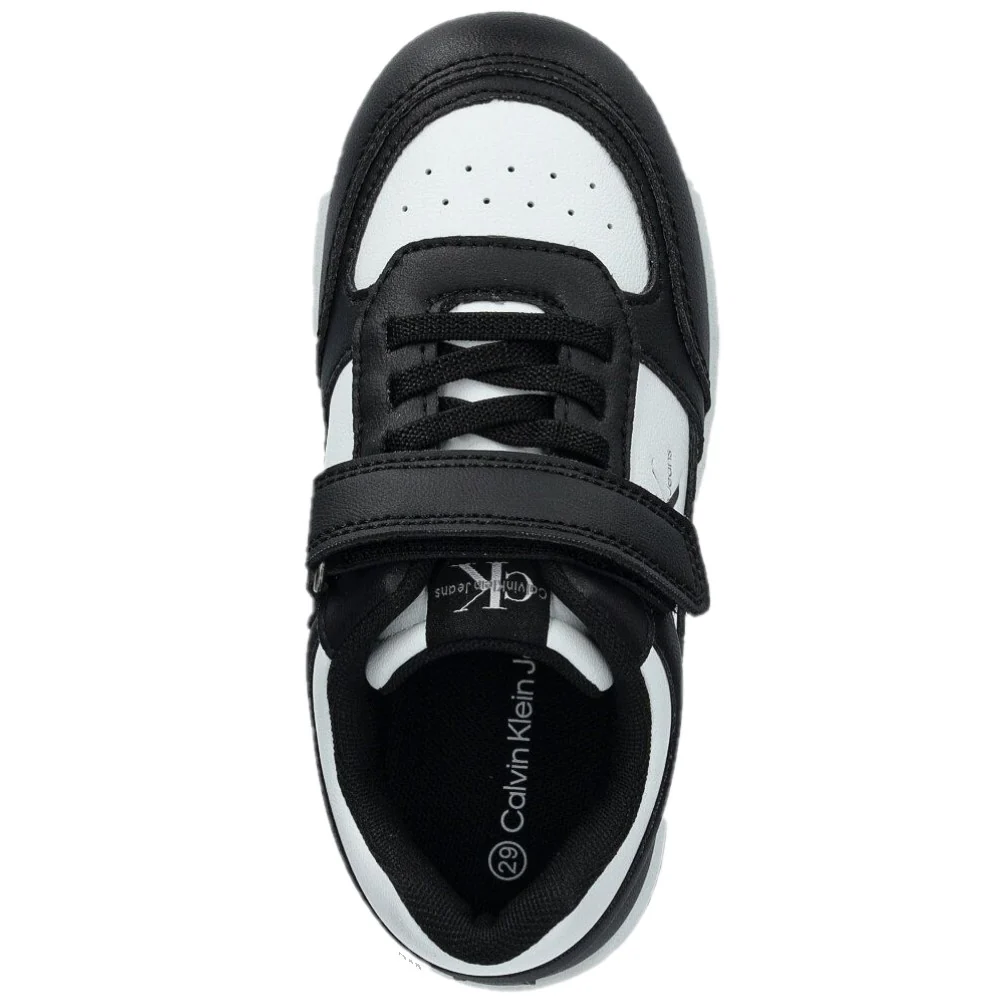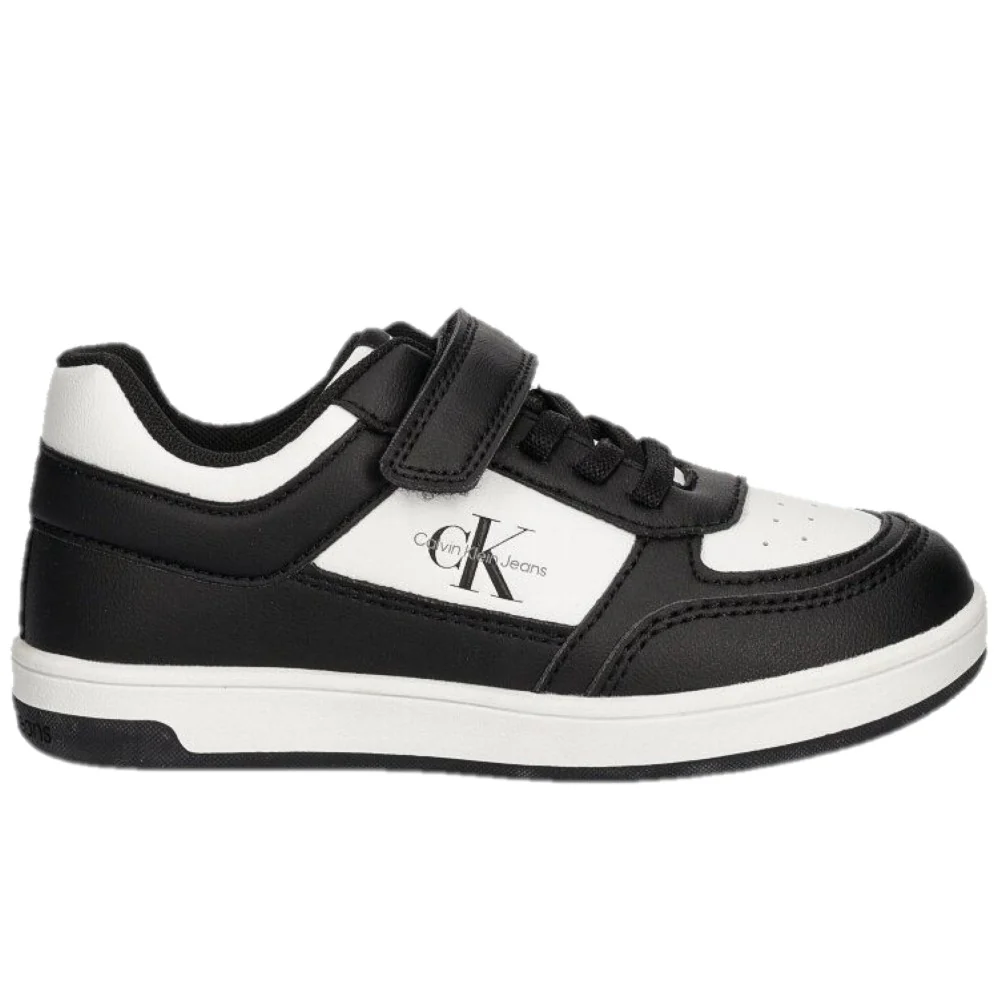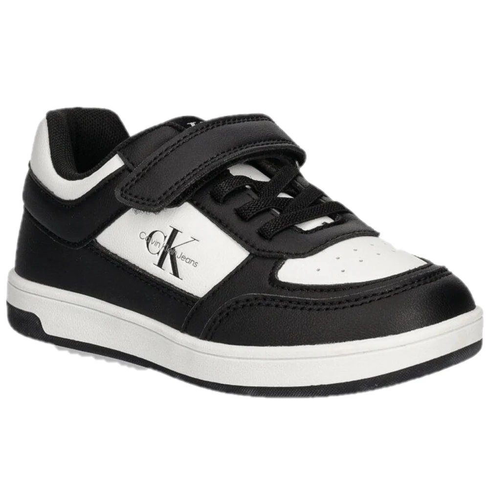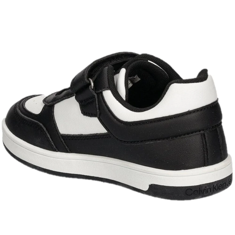 Scarpe CALVIN KLEIN in ecopelle con chiusura lacci elastici e velcro , punta microforata ,logo stampato , fondo leggero in gomma antiscivolo.