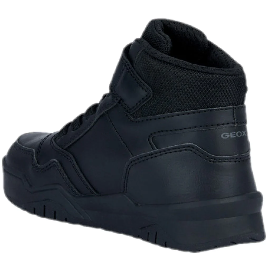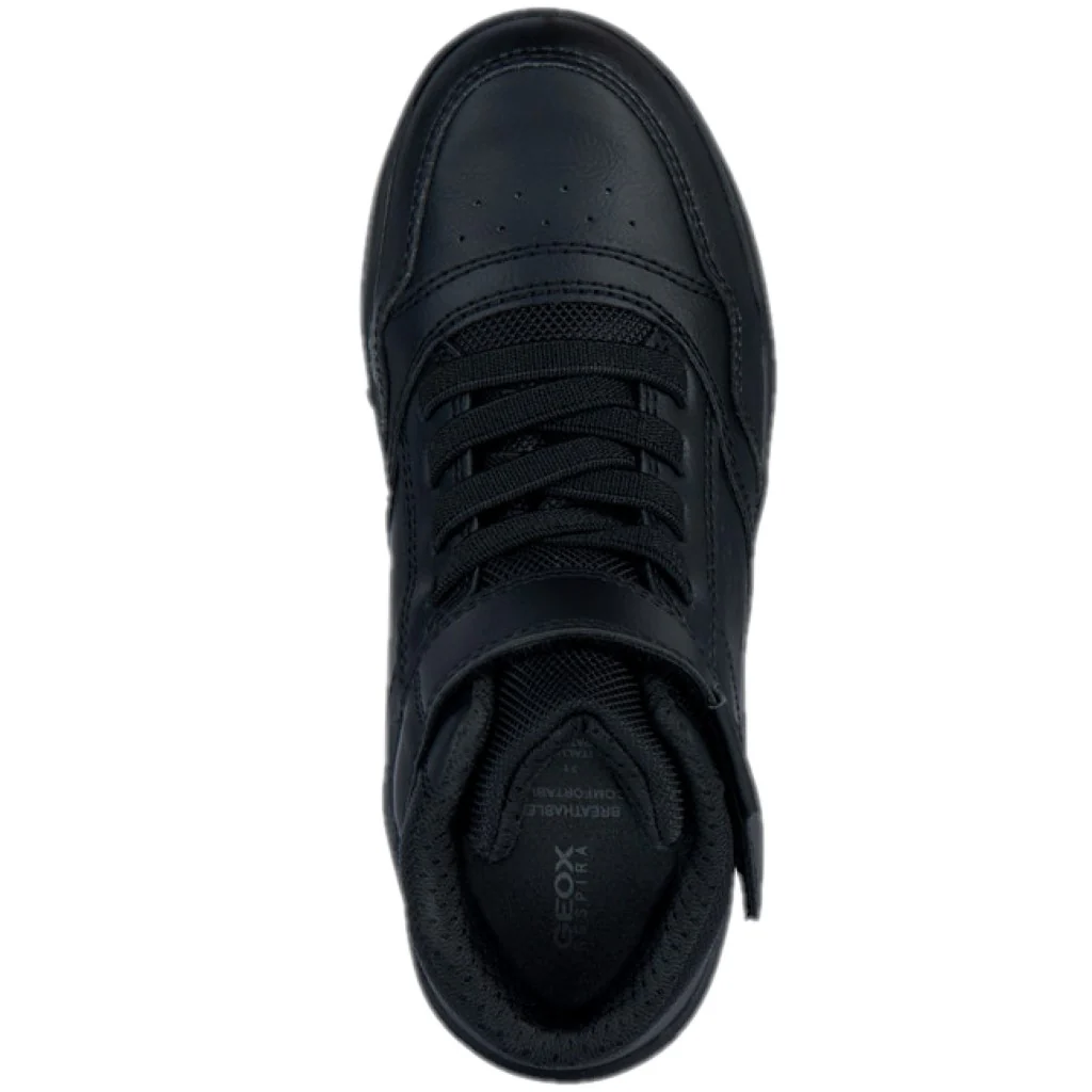 Scarpe GEOX modello mid-cut in ecopelle con laccio elastico e velcro , sottopiede traspirante ,fondo leggero in gomma antiscivolo.