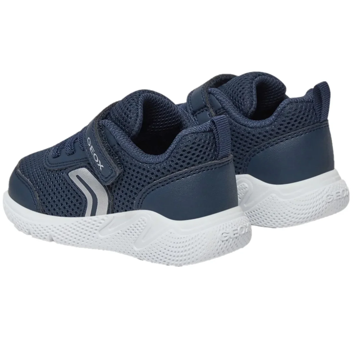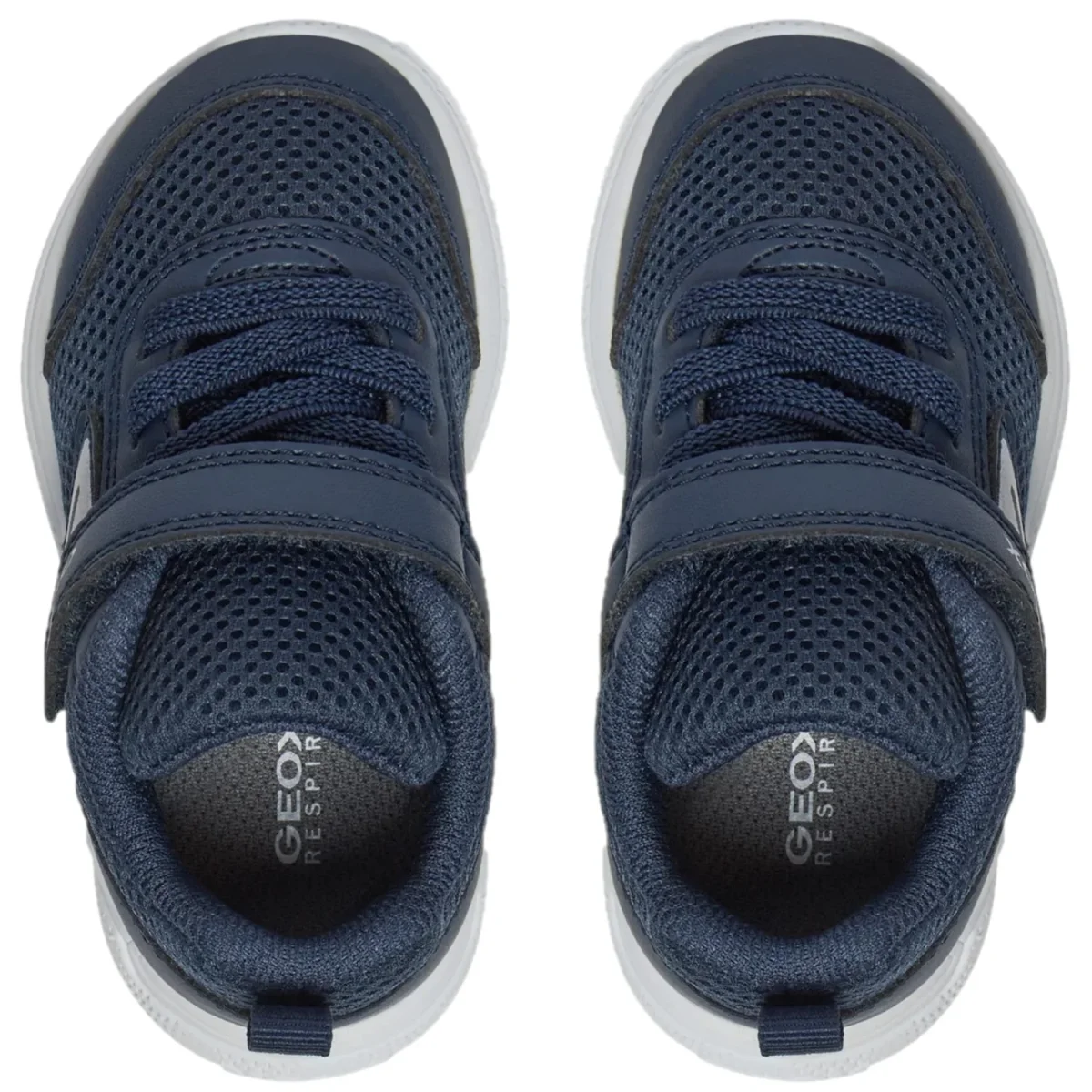 Scarpe GEOX per bambino in tessuto, chiusura con lacci elastici e strappo regolabile, sottopiede in vera pelle. fondo in gomma antiscivolo. con la caratteristica “geox la scarpa che respira”