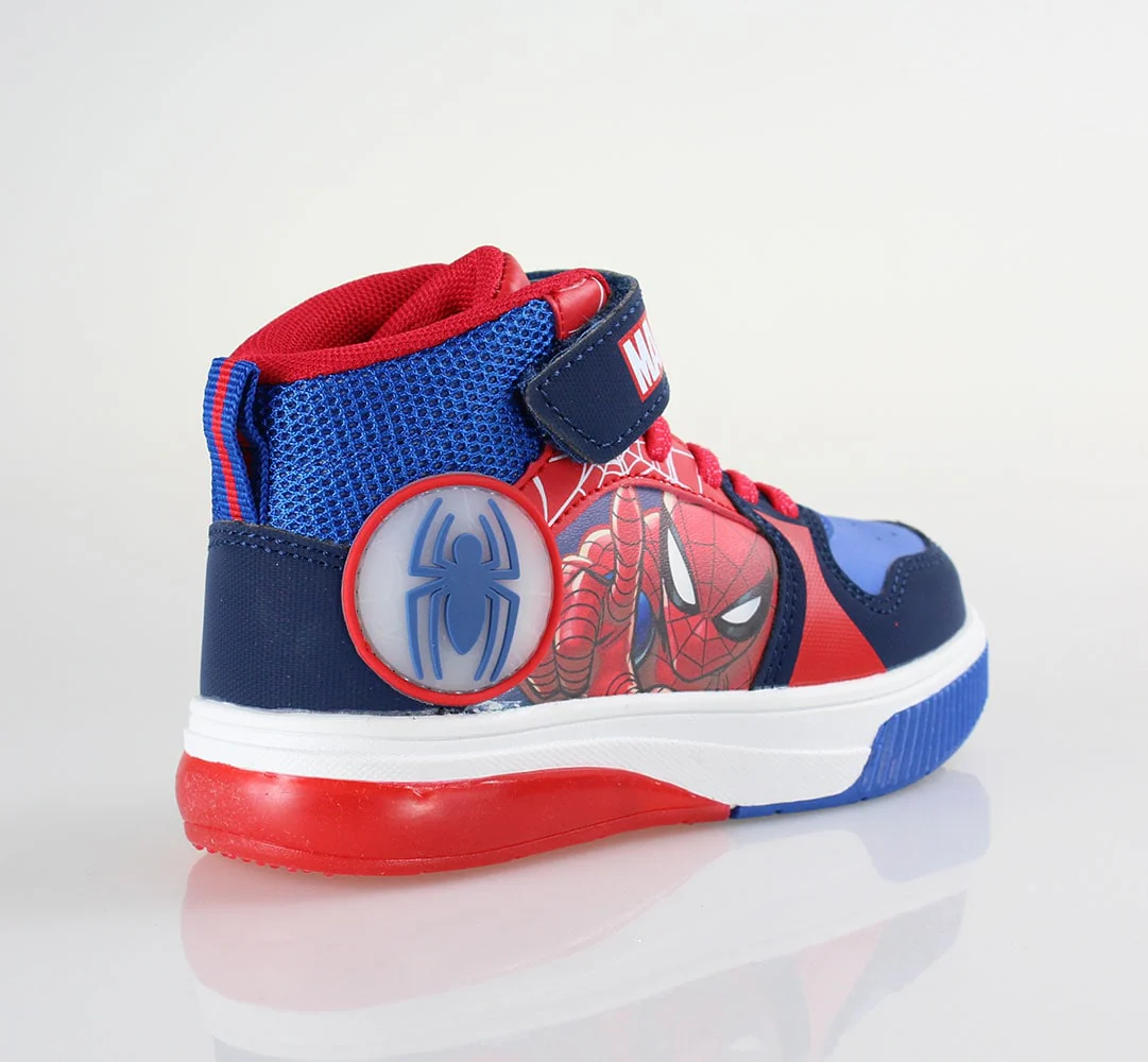 Scarpe SPIDER MAN con luci , chiusura con lacci elastici e velcro regolabile. fondo in gomma antiscivolo.