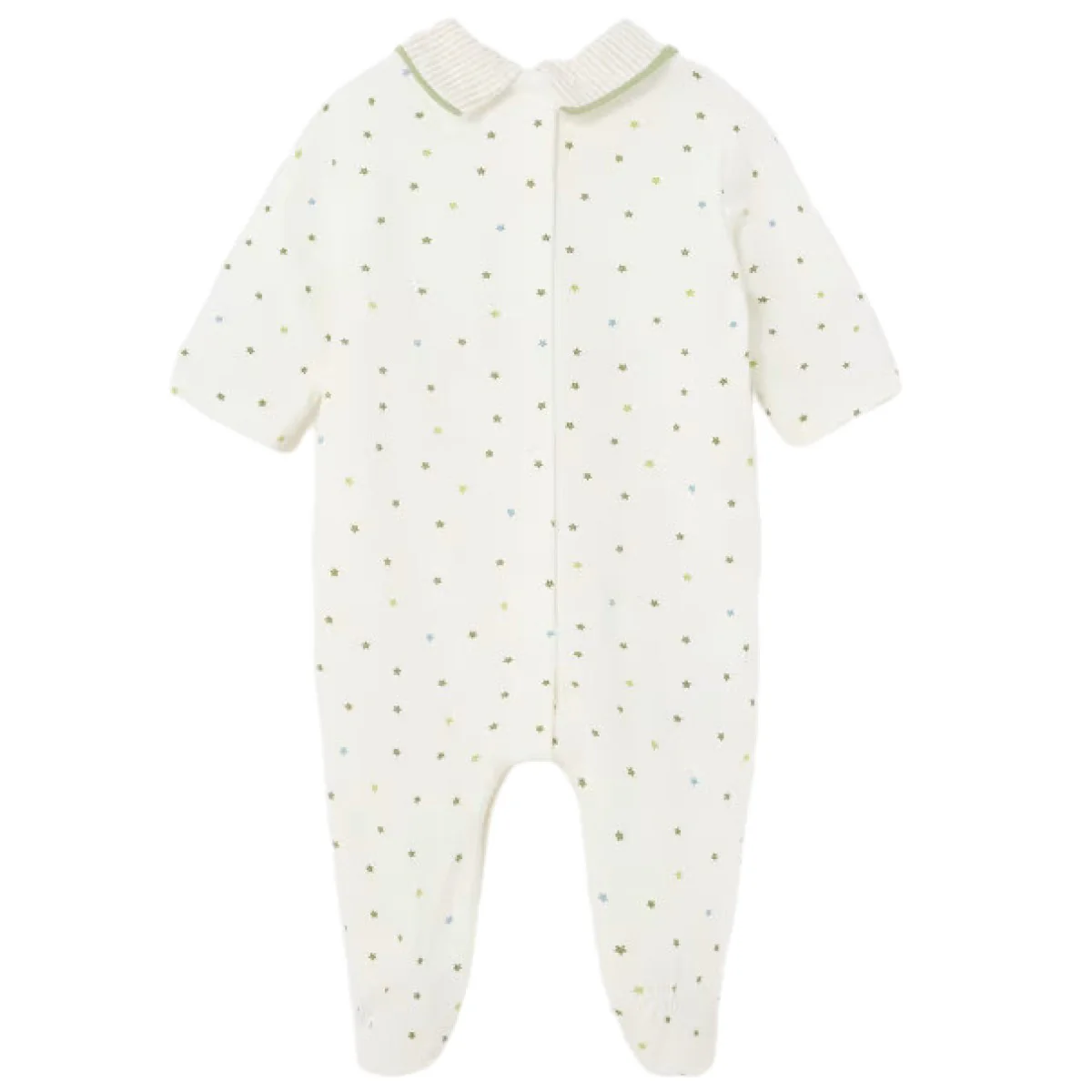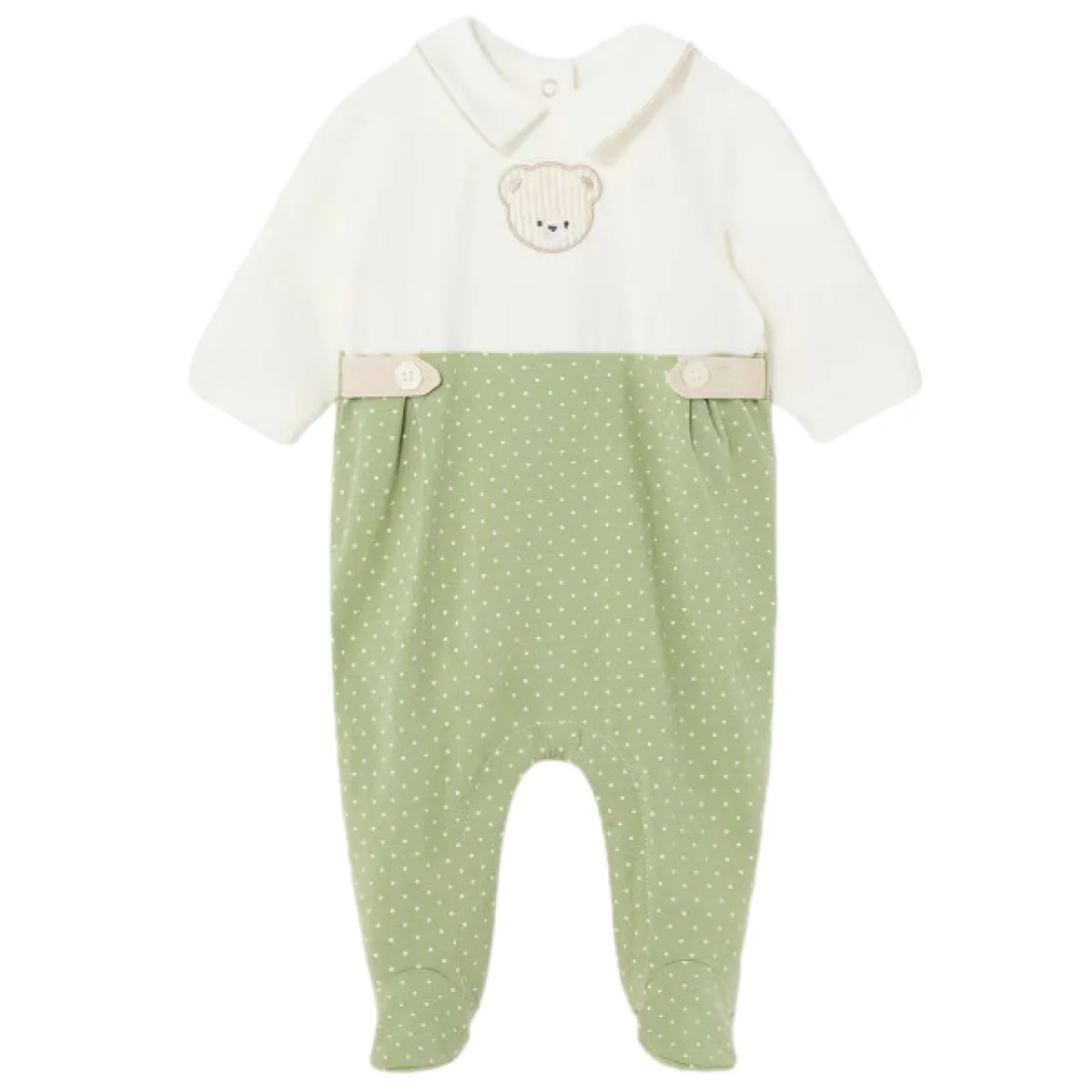 Set 2 tutine MAYORAL in cotone a fantasie differenti con patch, colletto e finti bottoncini applicati, chiusura con clips sul retro.