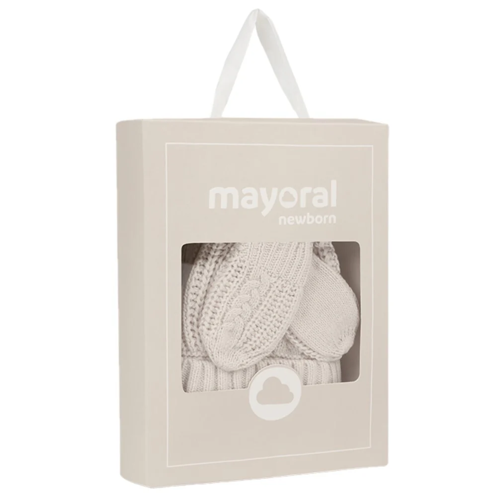 Set MAYORAL Cappello e Muffole in cotone lavorato.codice: 9666 90 Milk vig