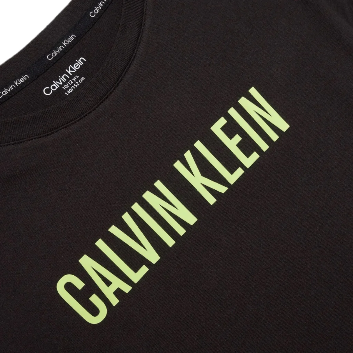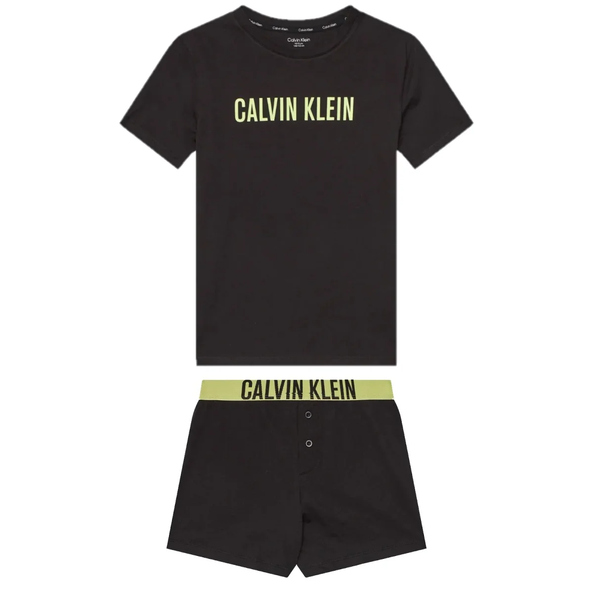 Set CALVIN KLEIN linea underwear composto da t-shirt mezza manica e boxer in cotone con logo stampato a contrasto .