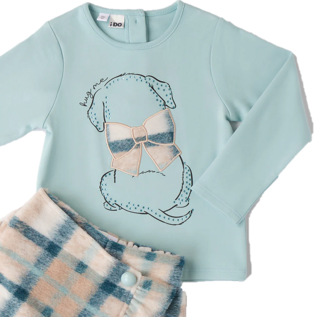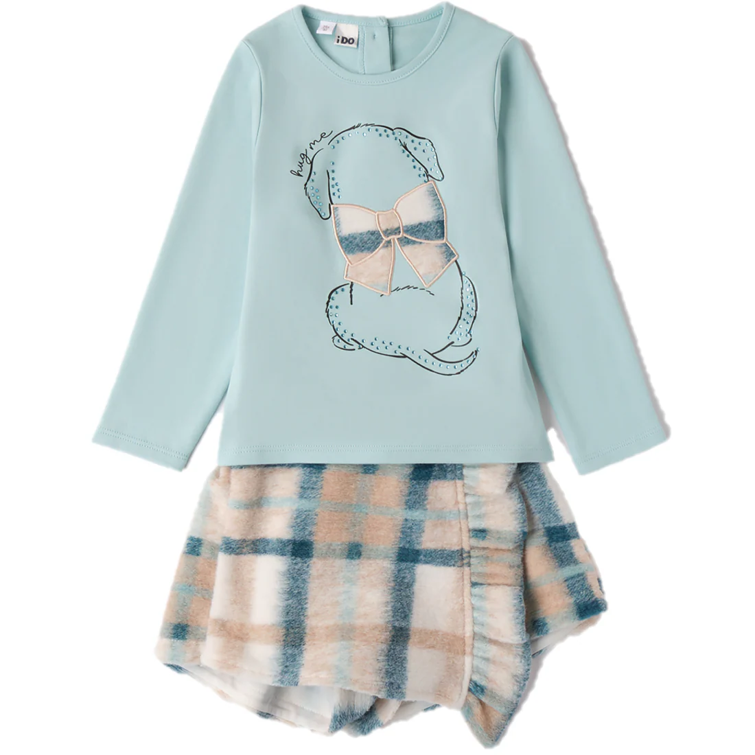 Completo shorts e T-shirt bambina i DO coordinati, shorts in tessuto morbido e baldo, shirt manica lunga in cotone con applicazioni.