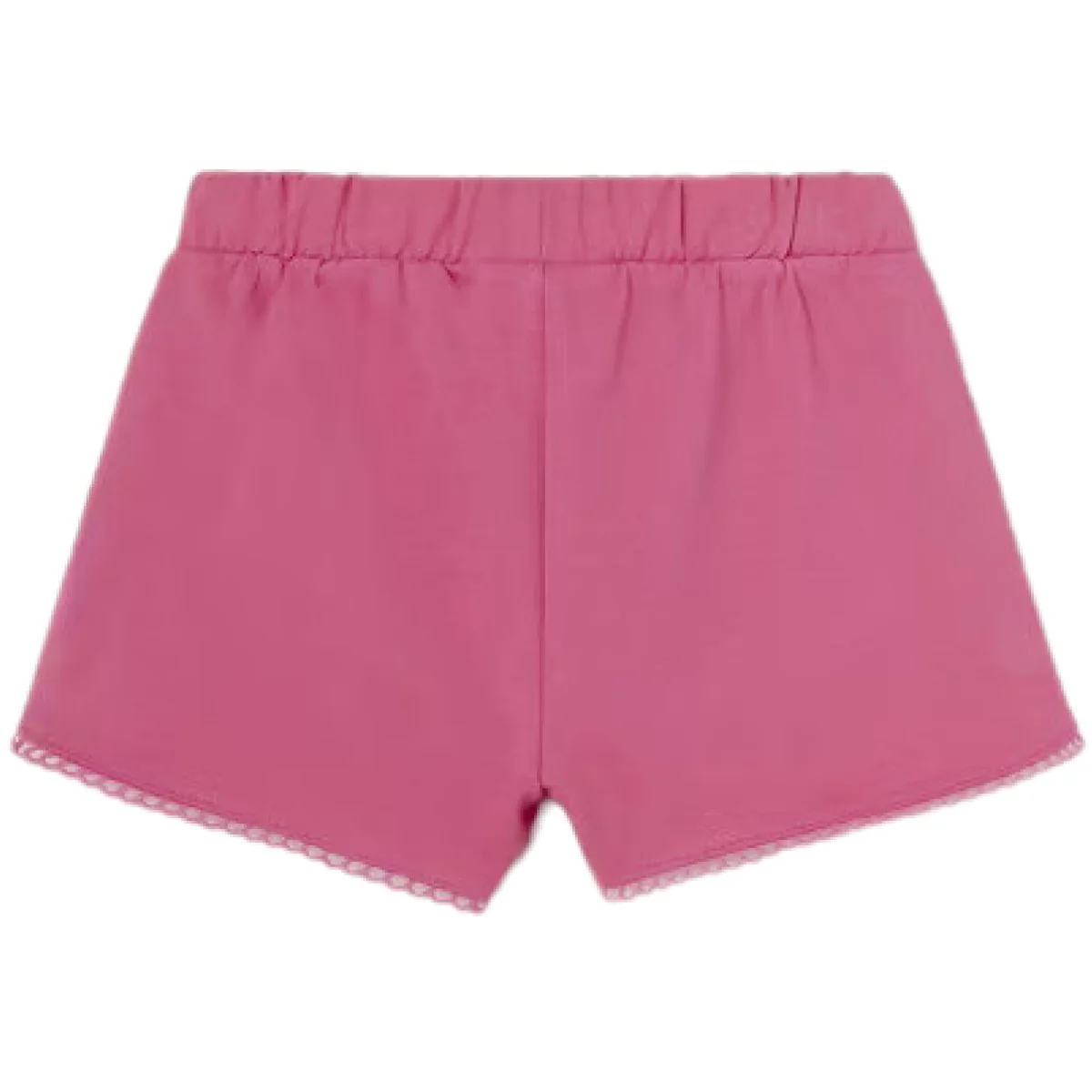 Shorts MAYORAL in cotone con elastico in vita e finto fiocchetto applicato, rifiniture ricamate applicate e finte tasche laterali.