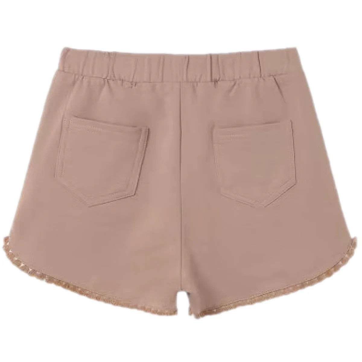 Shorts MAYORAL in cotone con elastico in vita e laccetto , rifinitura sfrangiata , taschini laterali e sul retro .