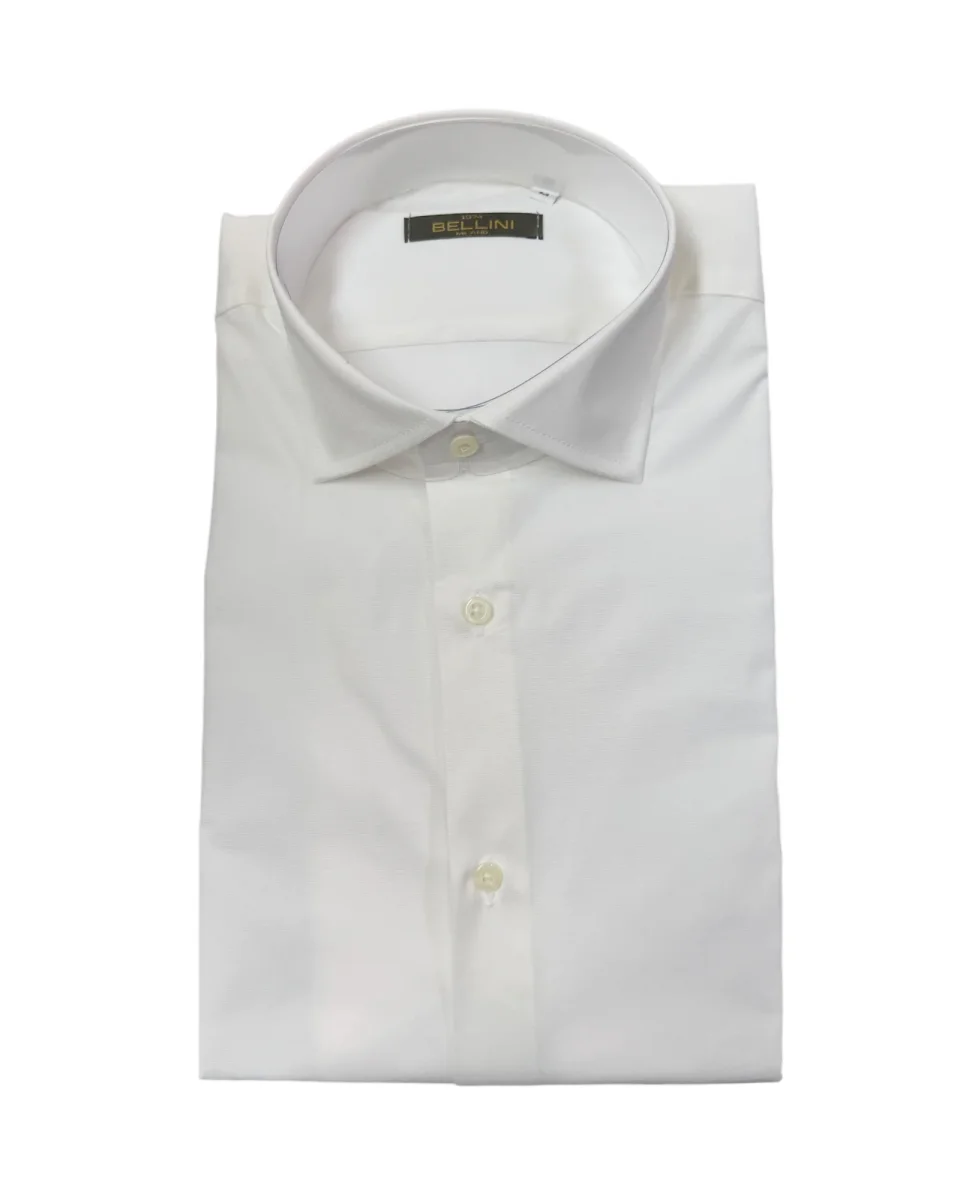 Camicia basic in tessuto cotone elasticizzato doppio tessuto. Colletto piccolo, abbottonatura centrale con bottoni madreperlati. Maniche lunghe. Vestibilità slim. Composizione tessuto
