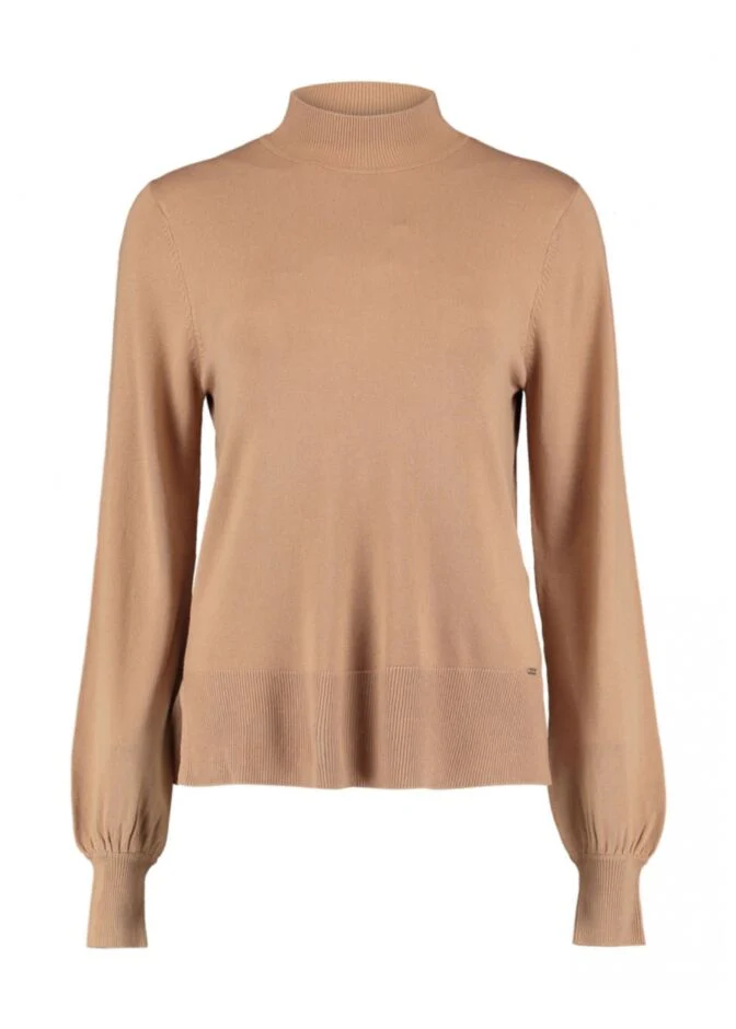 Maglia basica in morbido tessuto misto viscosa. Collo lupetto, maniche lunghe con polsini elasticizzati e fondo a palloncino. Vestibilit� dritta, fondo con spacchetti laterali, leggermente piu lunga dietro. Composizione tessuto 80% viscosa 20% poliestere.