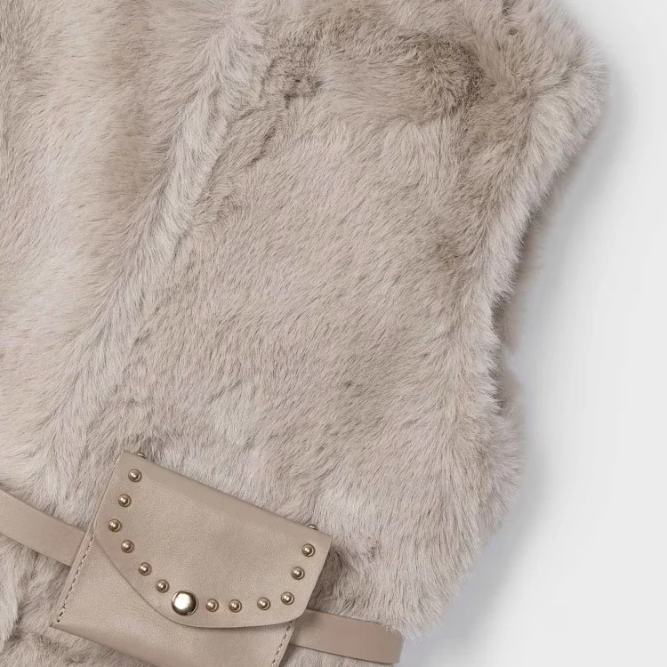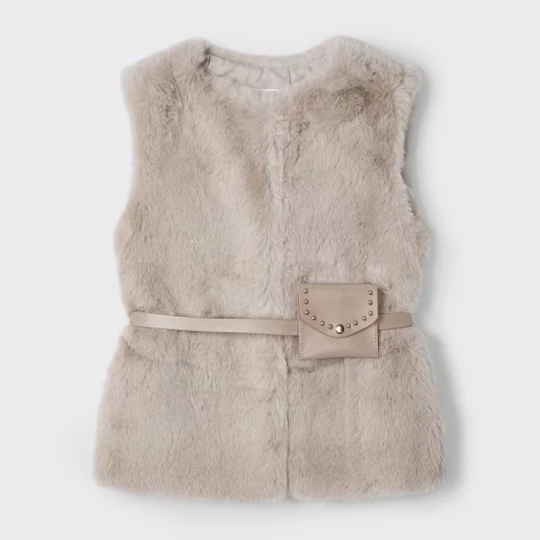 Smanicato bambina MAYORAL in ecopelliccia con cintura in vita e borsetta.
