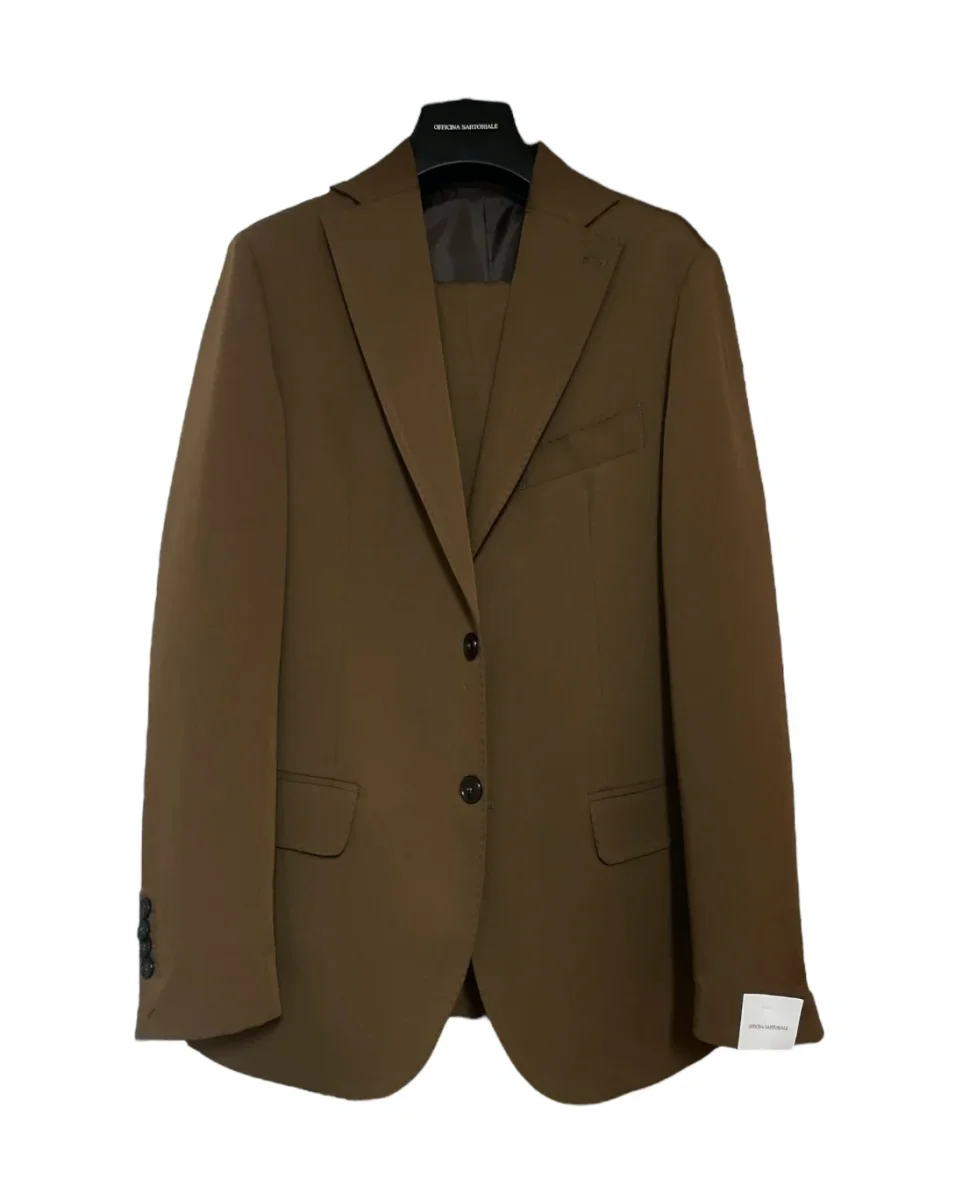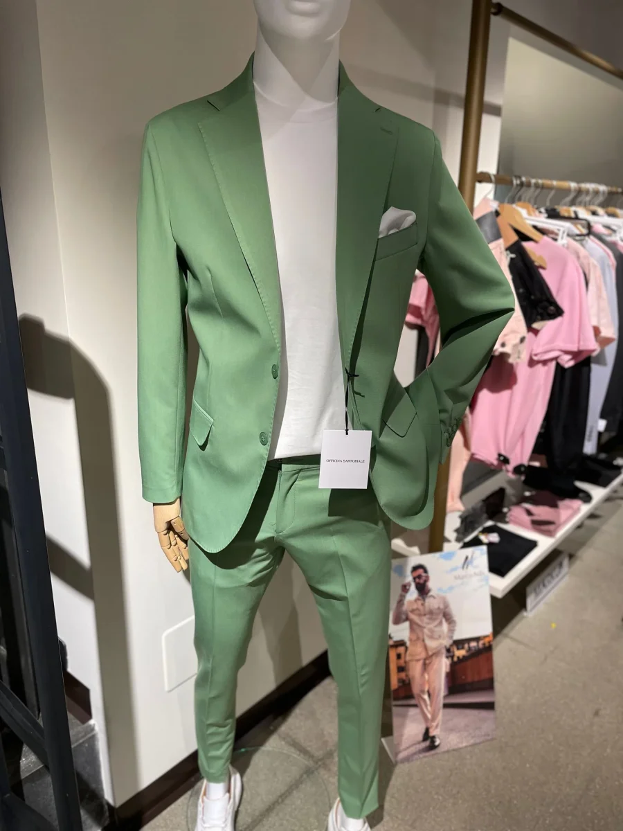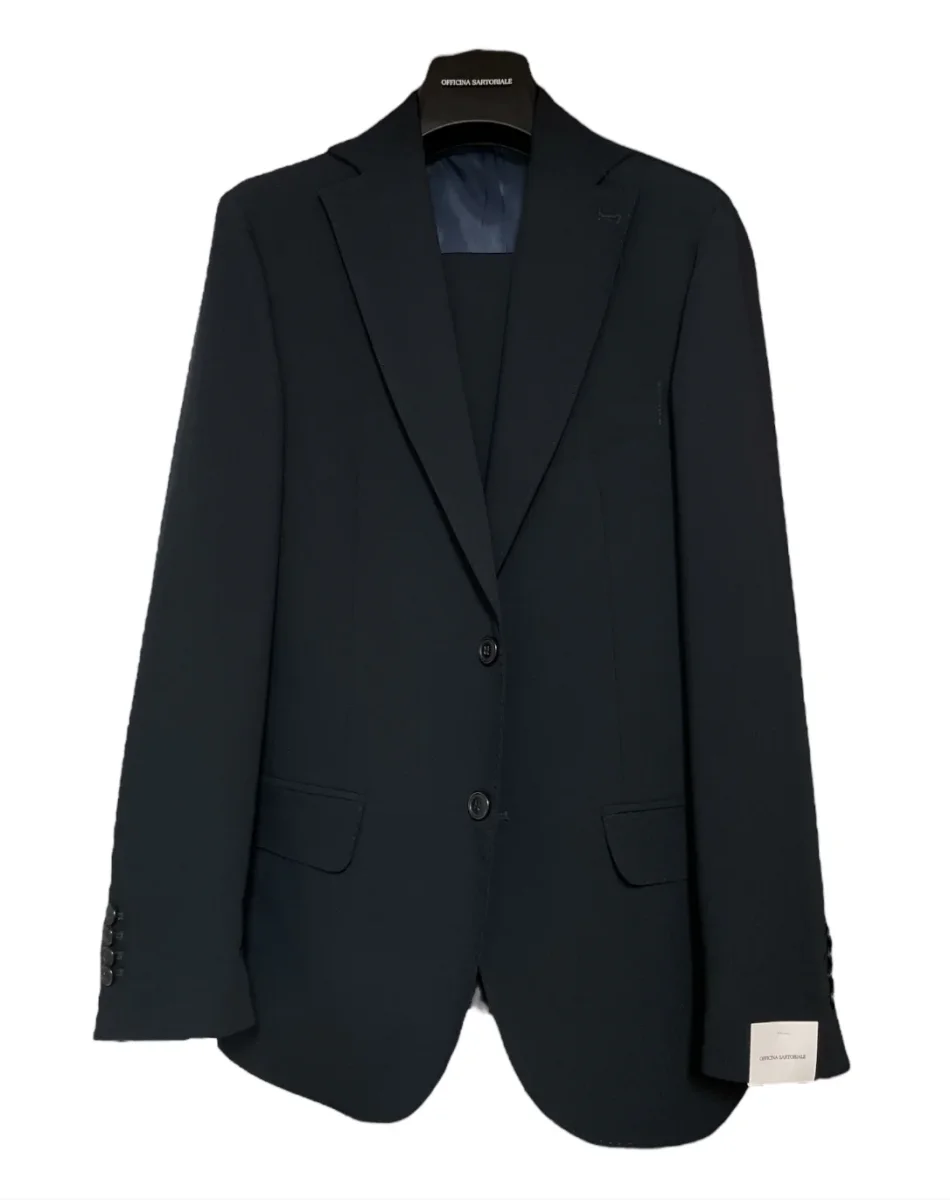 Abito basico taglio sartoriale slim fit in tessuto misto viscosa. Giacca slim, fodera su spalle ed interno maniche, interno sfoderato. Chiusura con doppio bottone in tinta, tasche con pattina applicata. Pantalone vita regolare con passanti, chiusura con zip e gancio interno, tasche laterali a filo. Gamba slim e fondo stretto con piega non rifinita. Vestibilità slim. Composizione tessuto 69% poliestere 25% viscosa 6% elastan.