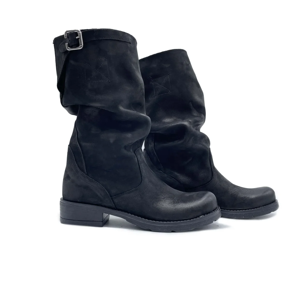Biker al Polpaccio in Nabuk Nero sfumato – Eccellenza e Stile Firmato Vyjoù