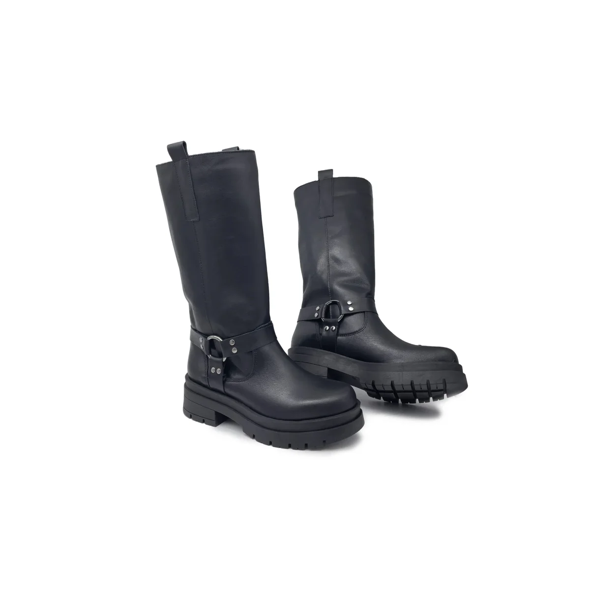 Questo non è solo uno stivale, è un’icona di stile. Realizzato artigianalmente in Italia, il nostro stivale al polpaccio in vera pelle nera eleva ogni outfit con la sua audace cavigliera in canna di fucile fissa, un dettaglio che non passa inosservato. Con una suola rialzata, garantisce comfort e un tocco di altezza senza compromessi.