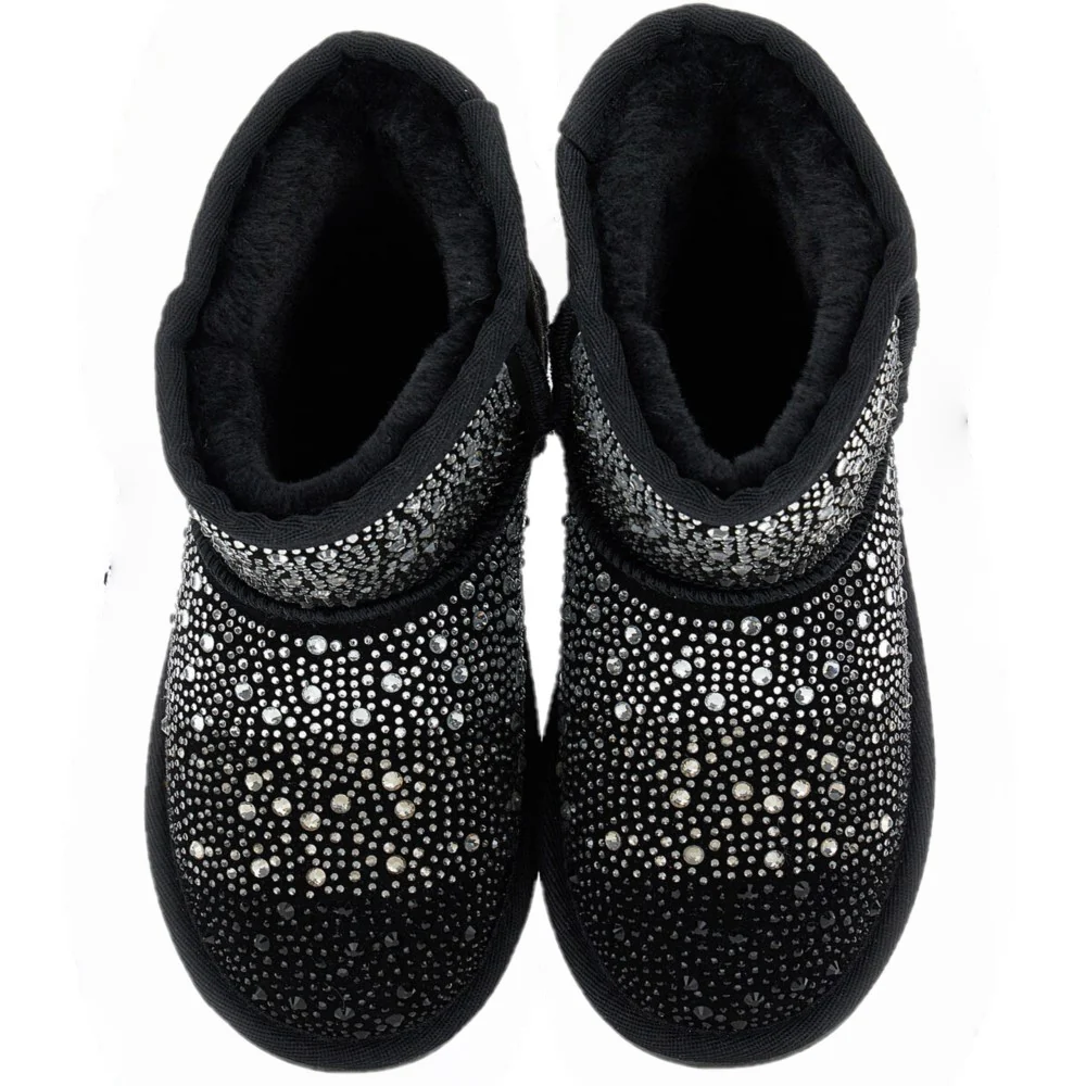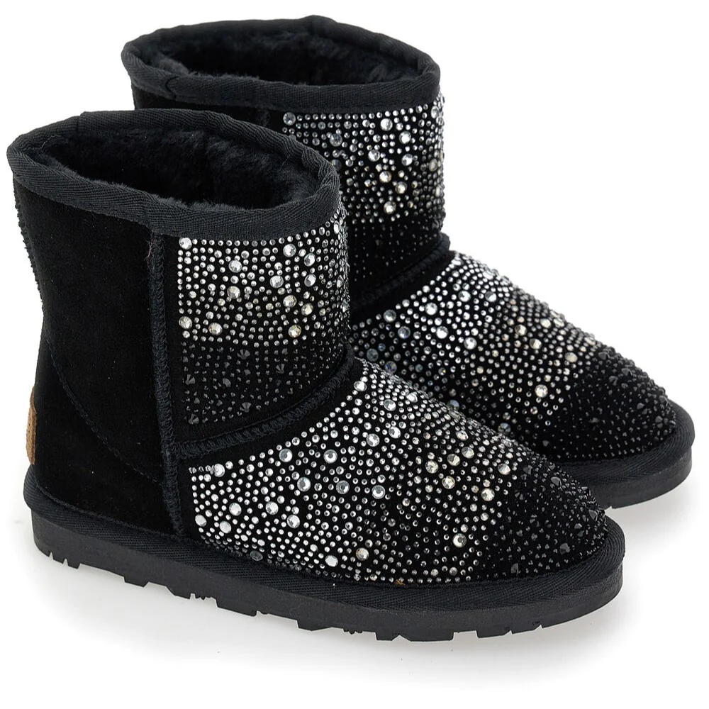 Stivale MONNALISA in vera pelle con strass multicolor applicati fodera interna in ecopelliccia logato sul retro tallone fondo flessibile in gomma antiscivolo.