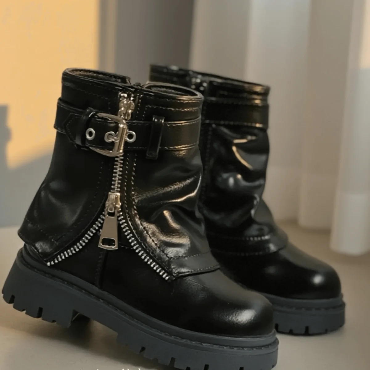 Stivaletti bambina neri con applicazioni fondo in gomma antiscivolo