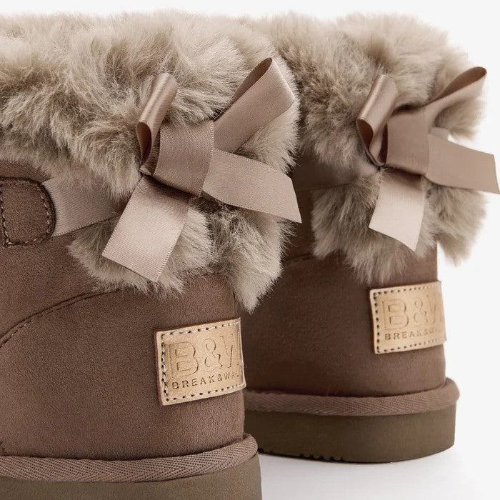 Stivaletti B&W OSITO con imbottitura in ecopelliccia, resistenti all acqua, fondo in gomma antiscivolo , fiocco applicato sul retro.
