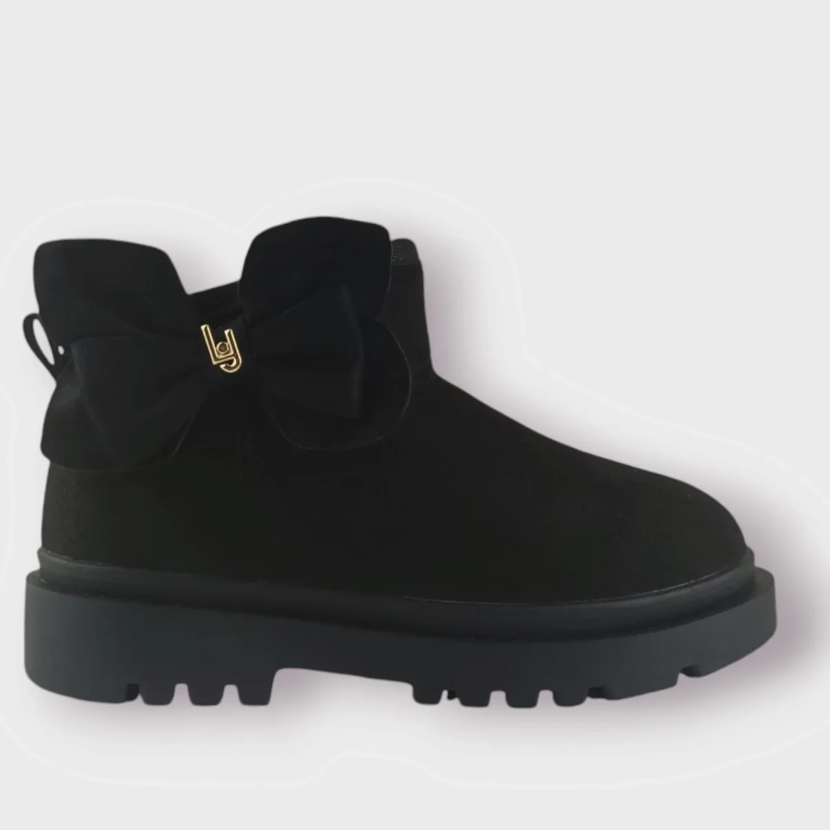 Stivaletto LIU JO in tessuto effetto metallizato , fodera interna in ecopelliccia , fiocchetto laterale con logo applicato ,fondo in gomma antiscivolo.