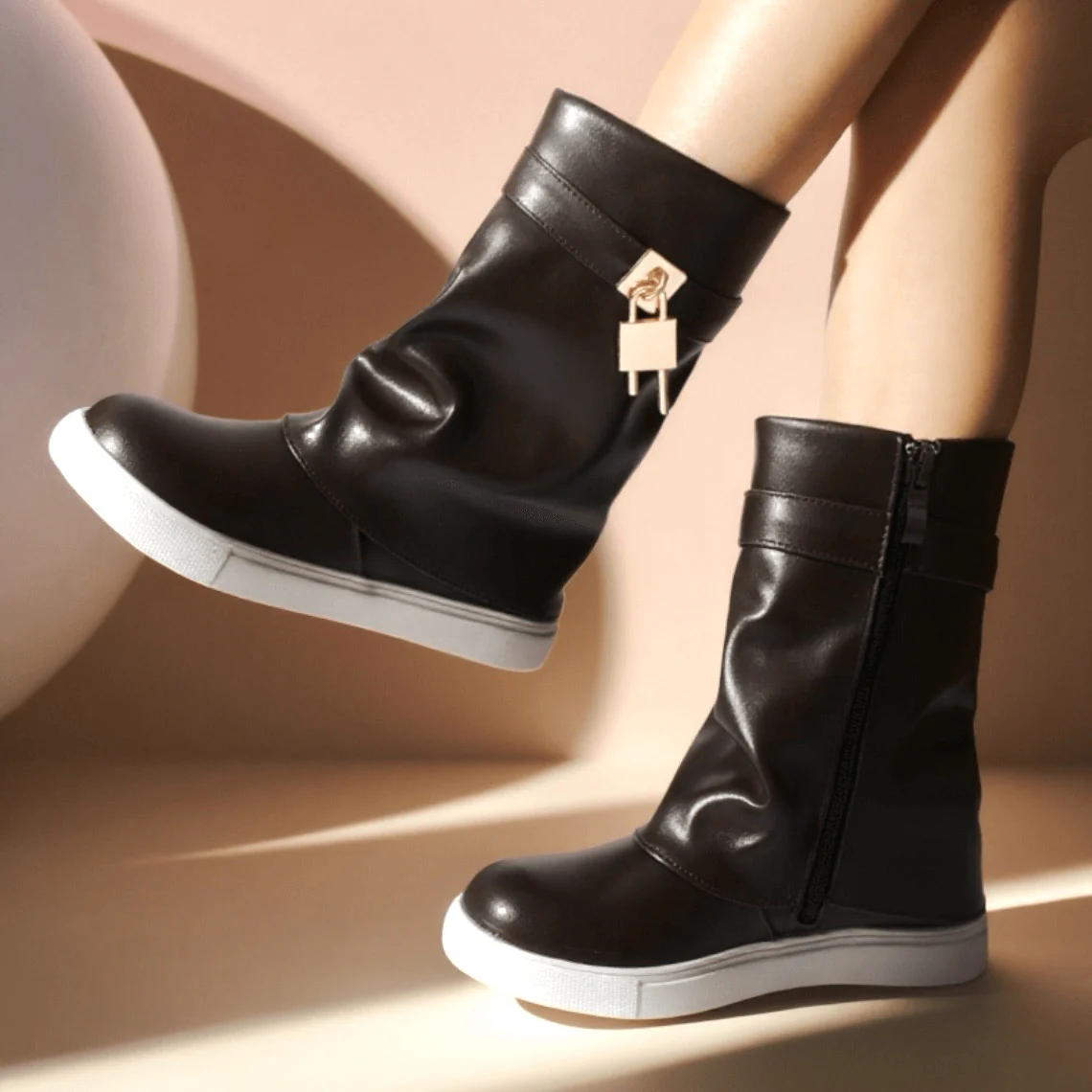 Stivaletti neri bambina con applicazione , fondo in gomma antiscivolo