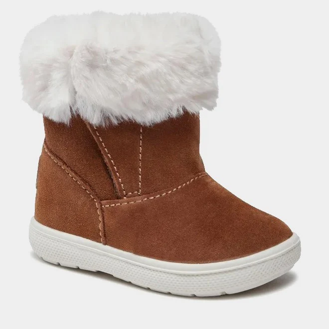 Stivaletti PRIMIGI in vera pelle con bordatura e fodera interna in ecopelliccia, chiusura velcro , sottopiede in vera pelle ,fondo leggero in gomma.