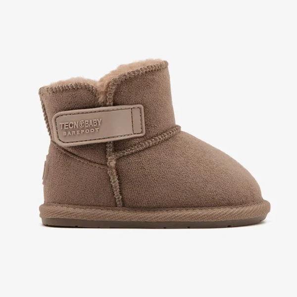 Stivaletti TECNOBABY barefoot con interno in ecopelliccia, apertura con velcro, fondo in gomma antiscivolo.