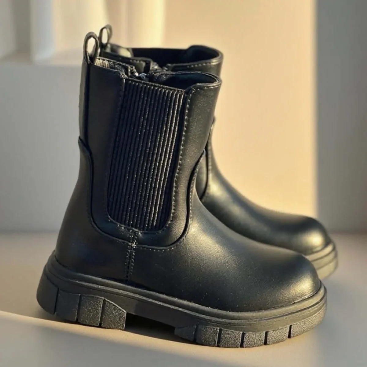 Stivaletto KS by SOFIA in ecopelle con interno in tessuto. Elastico laterale, chiusura con zip e fondo in gomma.