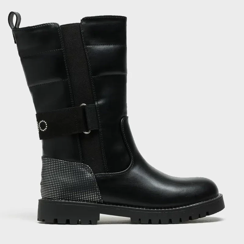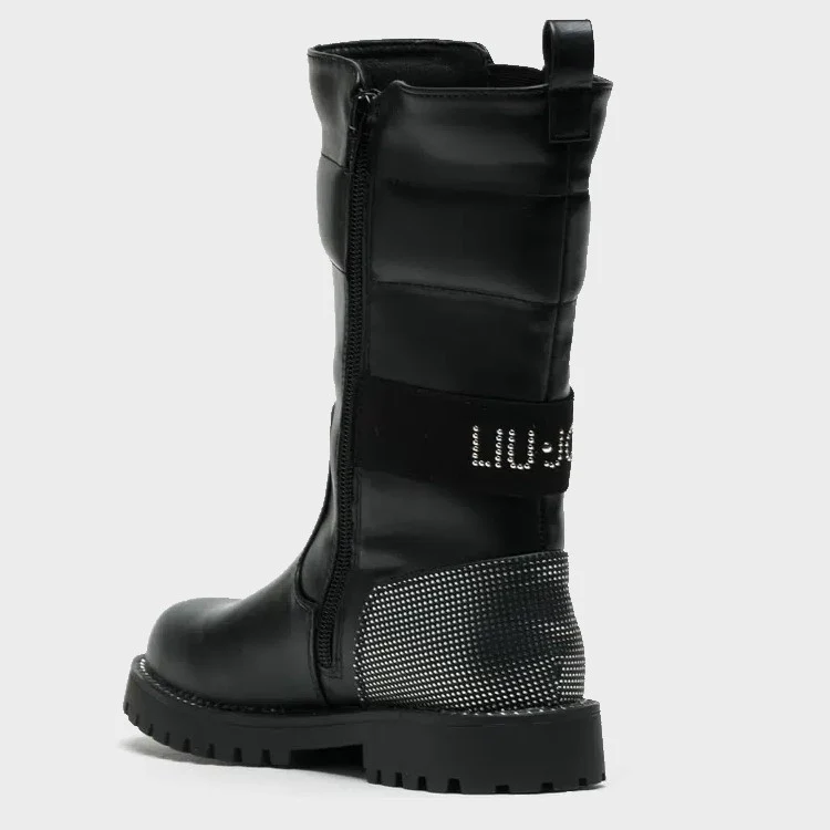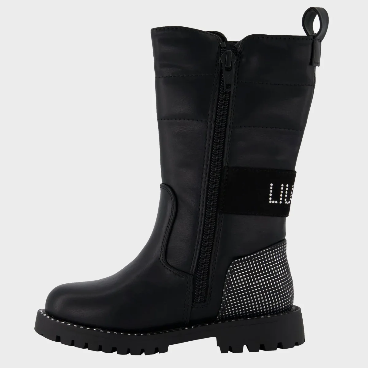 Stivale LIU JO in ecopelle con inserto elastico laterale ,fascia sul retro logata , chiusura zip laterale , fondo leggero in gomma antiscivolo.