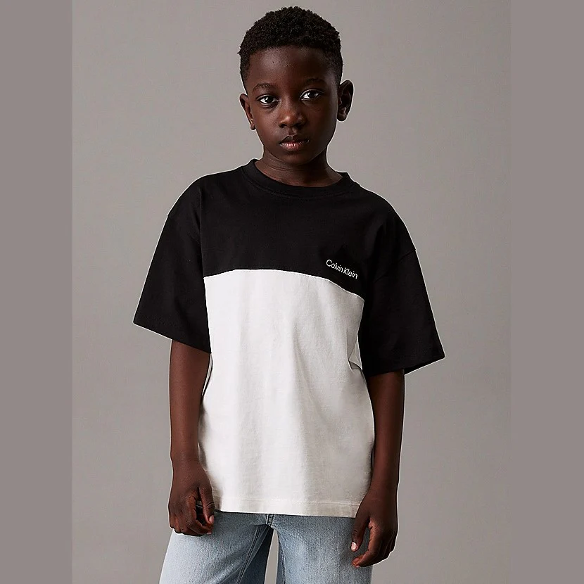 T-shirt CALVIN KLEIN in cotone bicolore con logo ricamato.