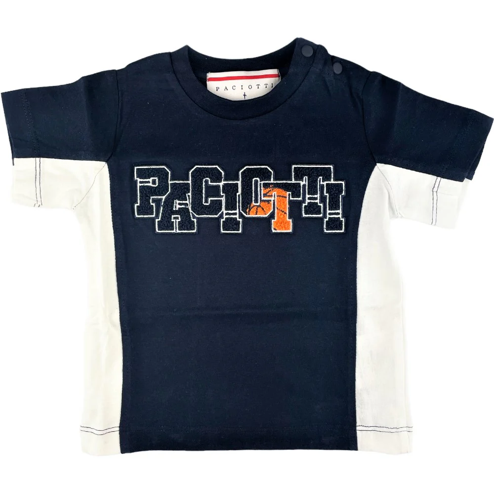 T-shirt CESARE PACIOTTI in cotone con rifiniture a contrasto logo paciotti in tessuto a rilievo.