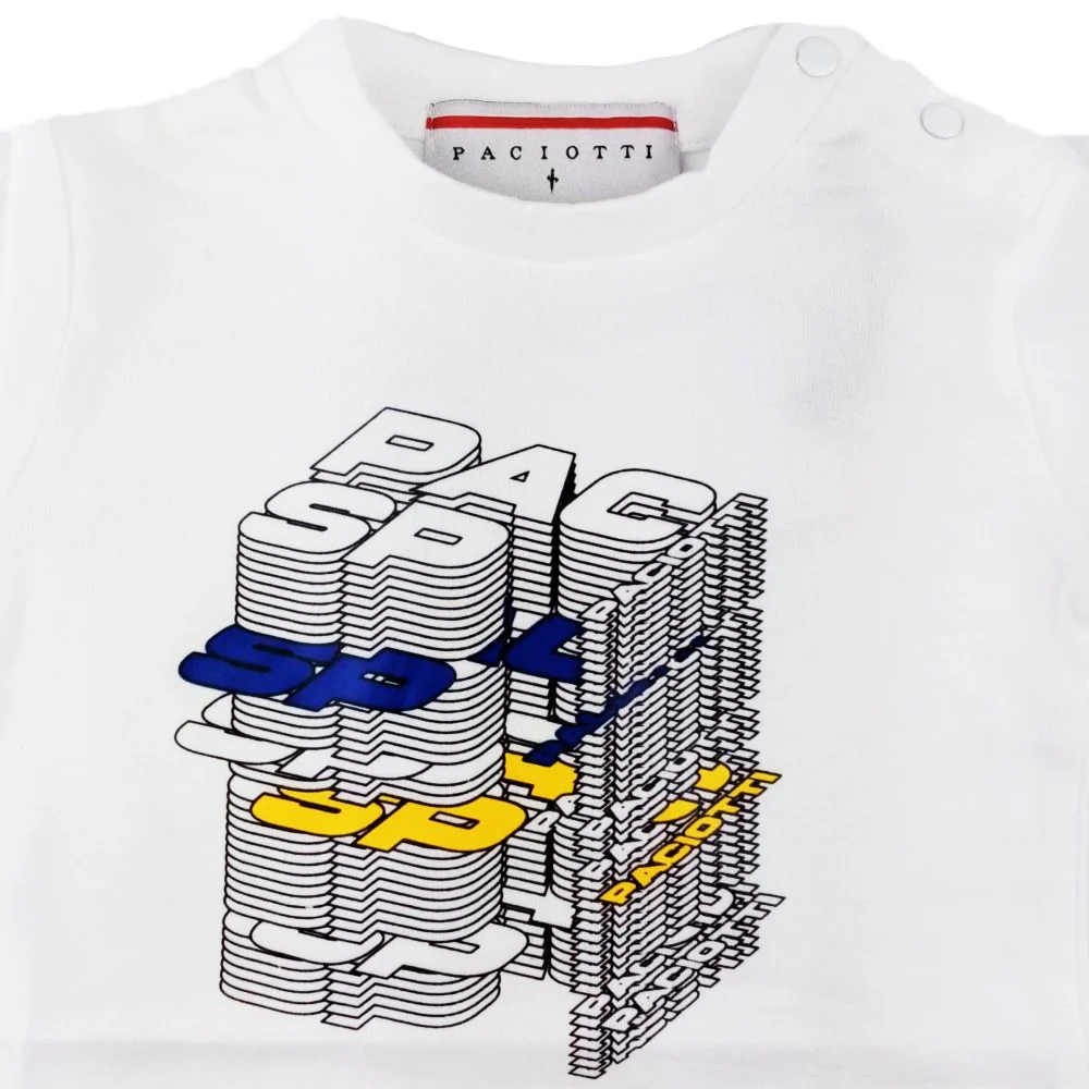 T-shirt CESARE PACIOTTI in cotone manica lunga con logo stampato a contrasto chiusura clips su spalla dalla taglia 6mesi alla taglia 24mesi