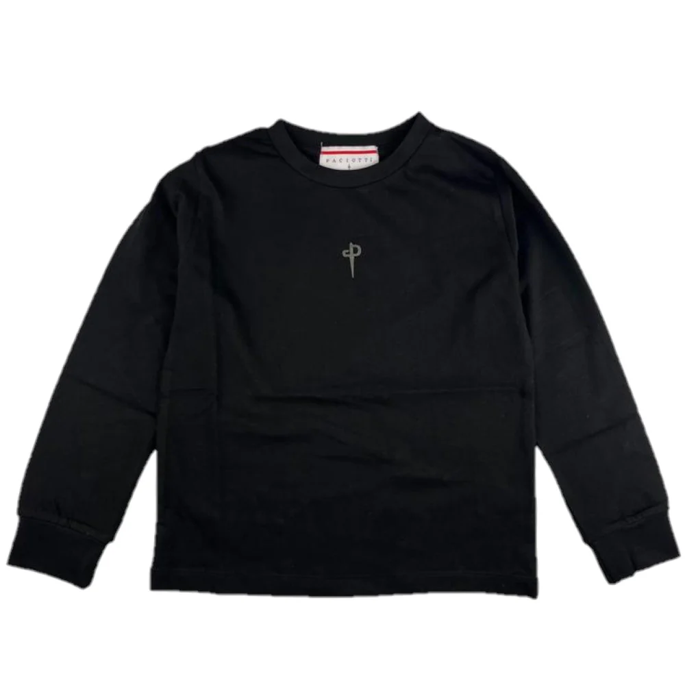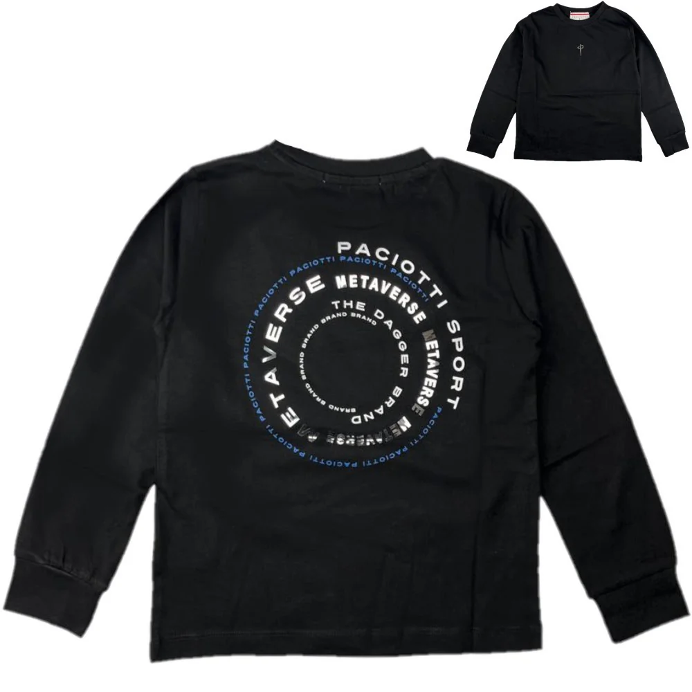 T-shirt CESARE PACIOTTI in cotone invernale girocollo a manica lunga con retro logato e spadino frontale effetto argentato.