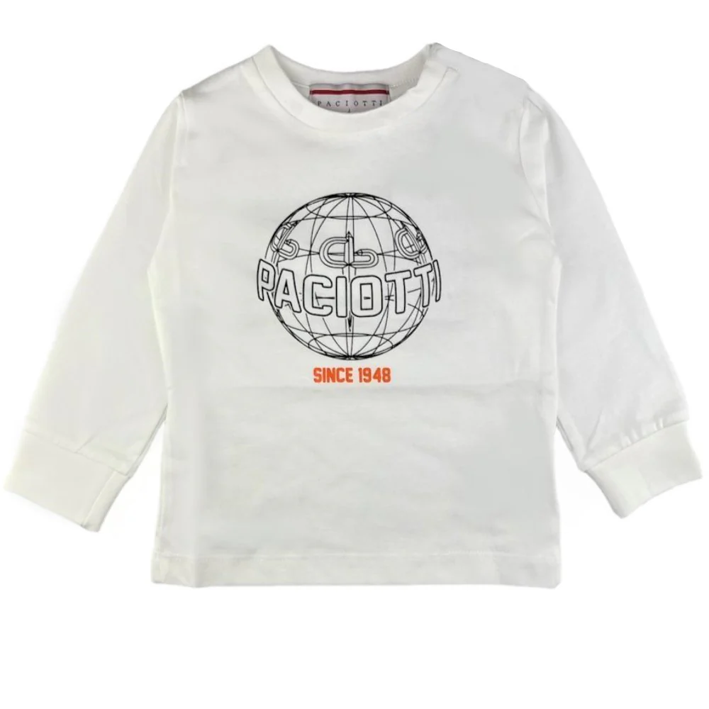 T-shirt CESARE PACIOTTI in cotone invernale girocollo a manica lunga con logo stampato .