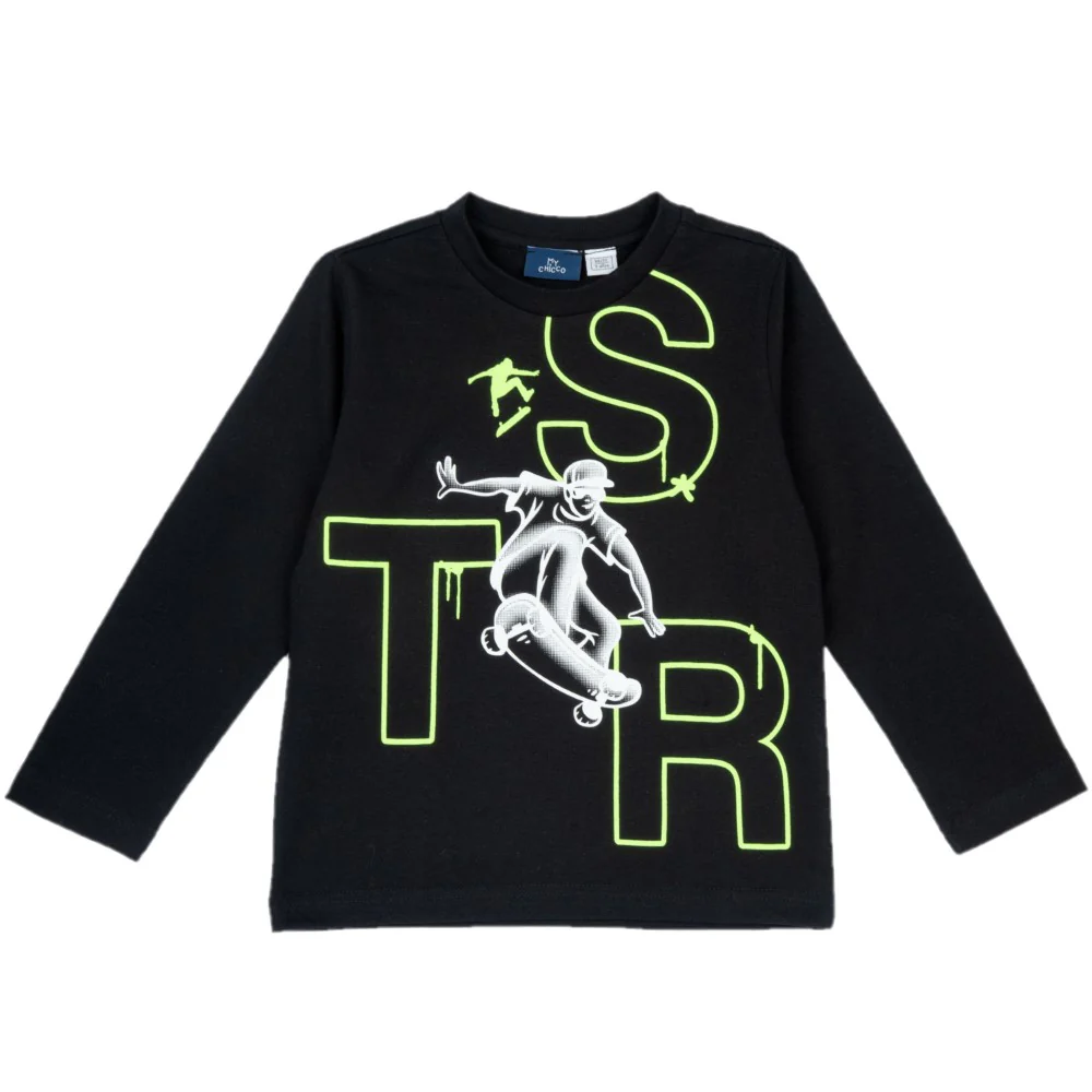 T-shirt CHICCO in cotone con stampa in colori a contrasto. Chiusura con clips su spalla nelle taglie 12mesi e 18mesi.