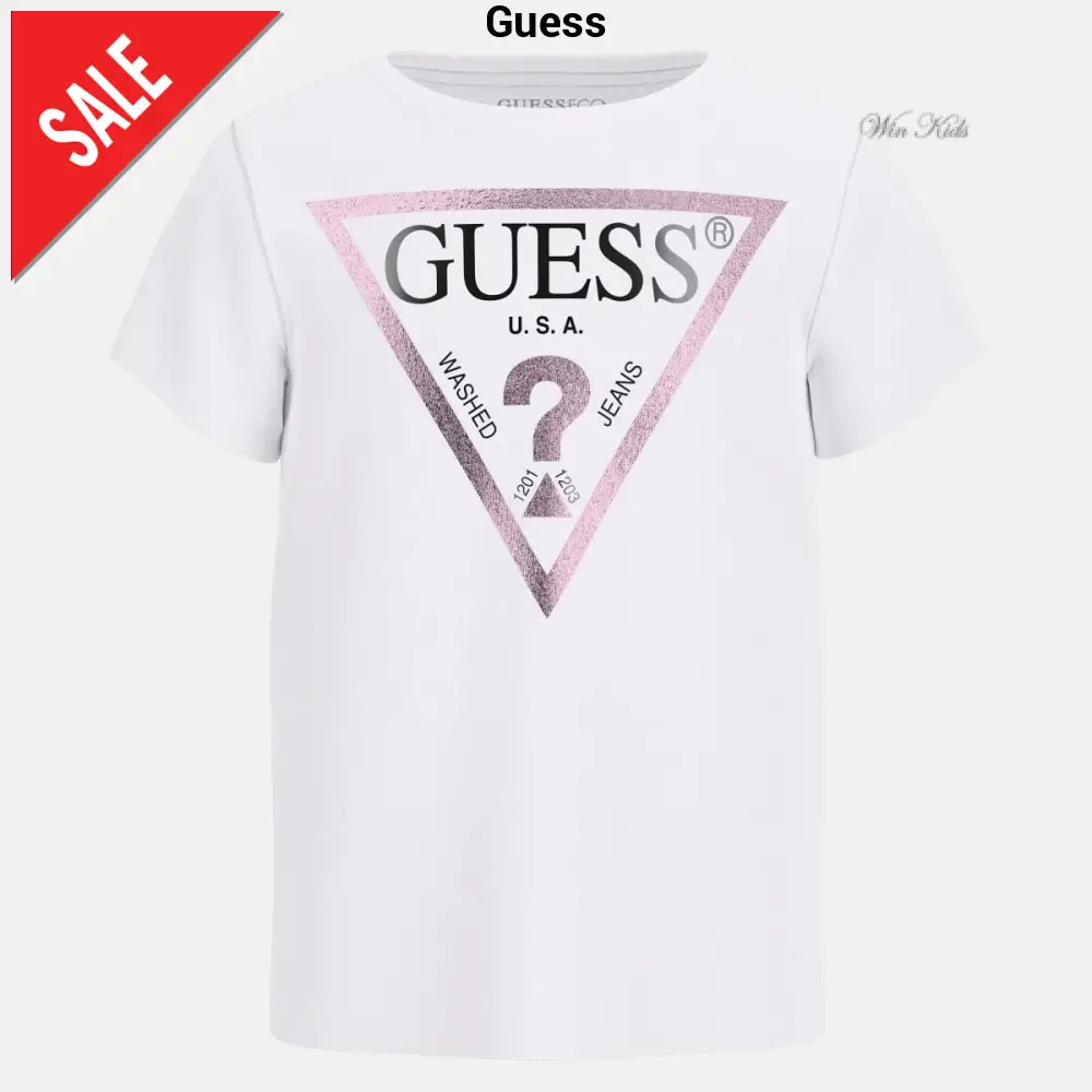 Shirt GUESS in cotone modello girocollo mezza manica con logo stampato in colore a contrasto, dalla taglia 3/6mesi alla 24mesi chiusura clips su spalla.