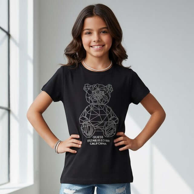 T-shirt GUESS nera con orsetto con strass 8 anni – 16 anni