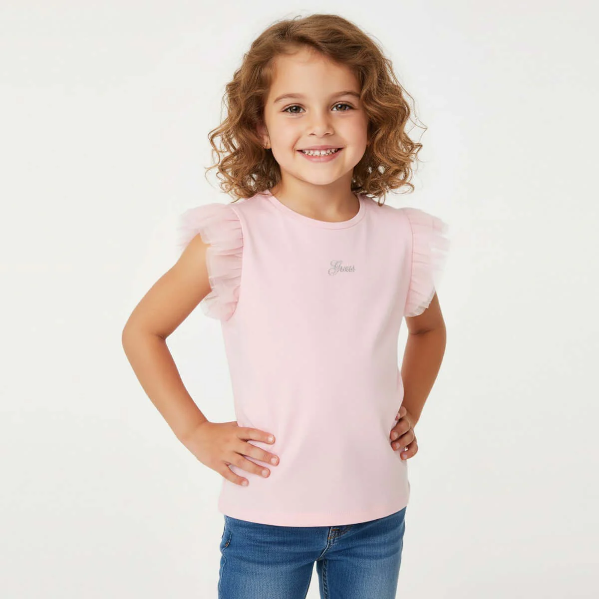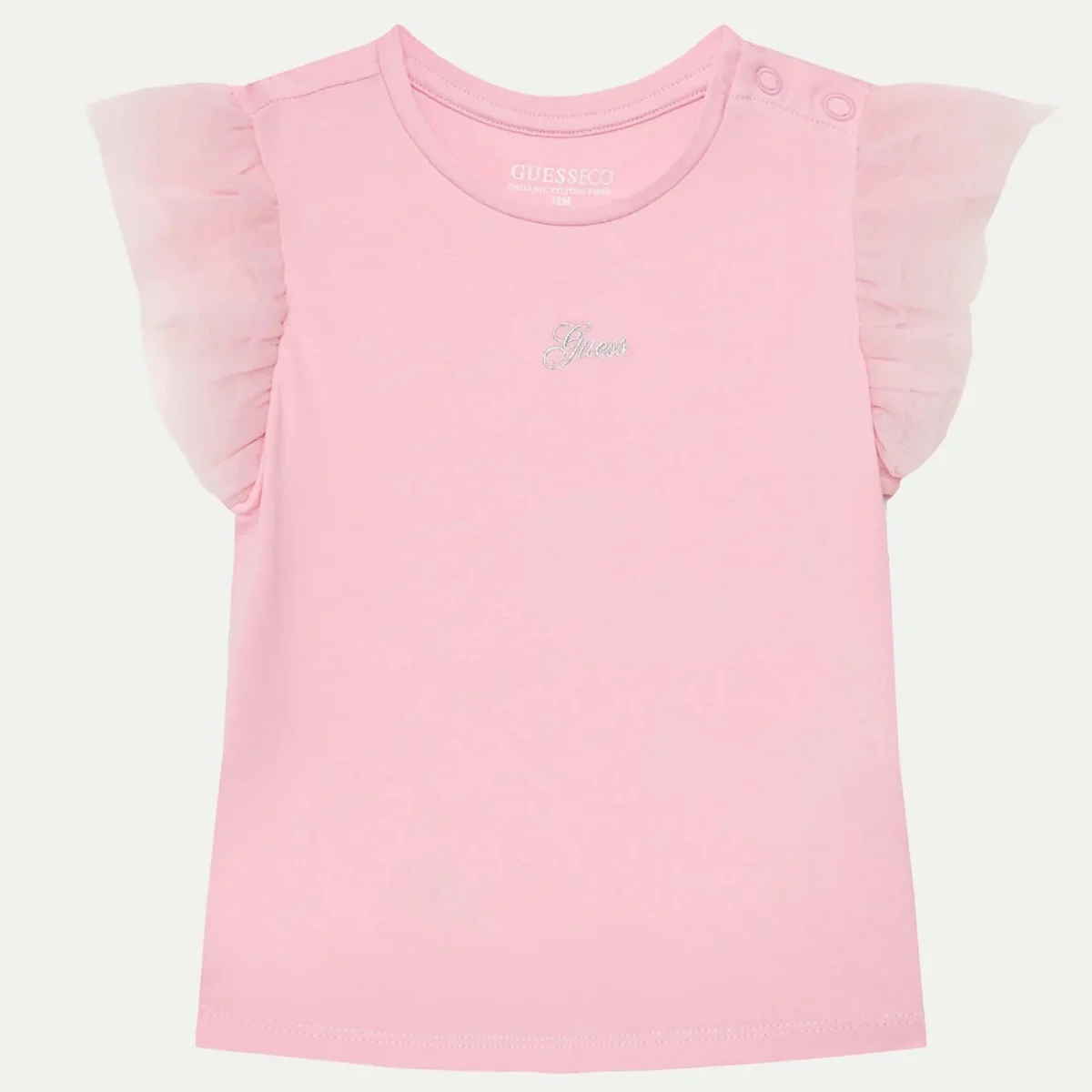 T-shirt GUESS rosa con maniche in tulle 2 anni – 7 anni