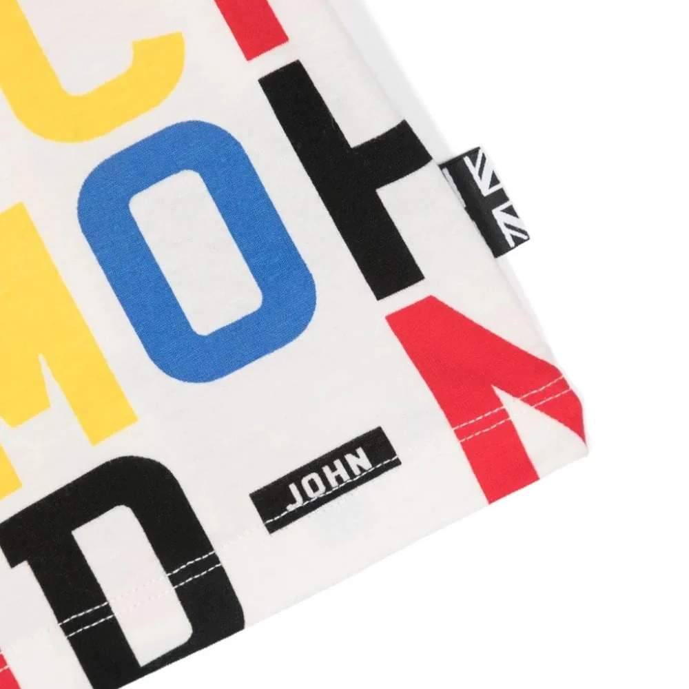 T-shirt JOHN RICMOND in cotone modello girocollo mezza manica a fantasia logata all over multicolor, chiusura clips logata su spalla.