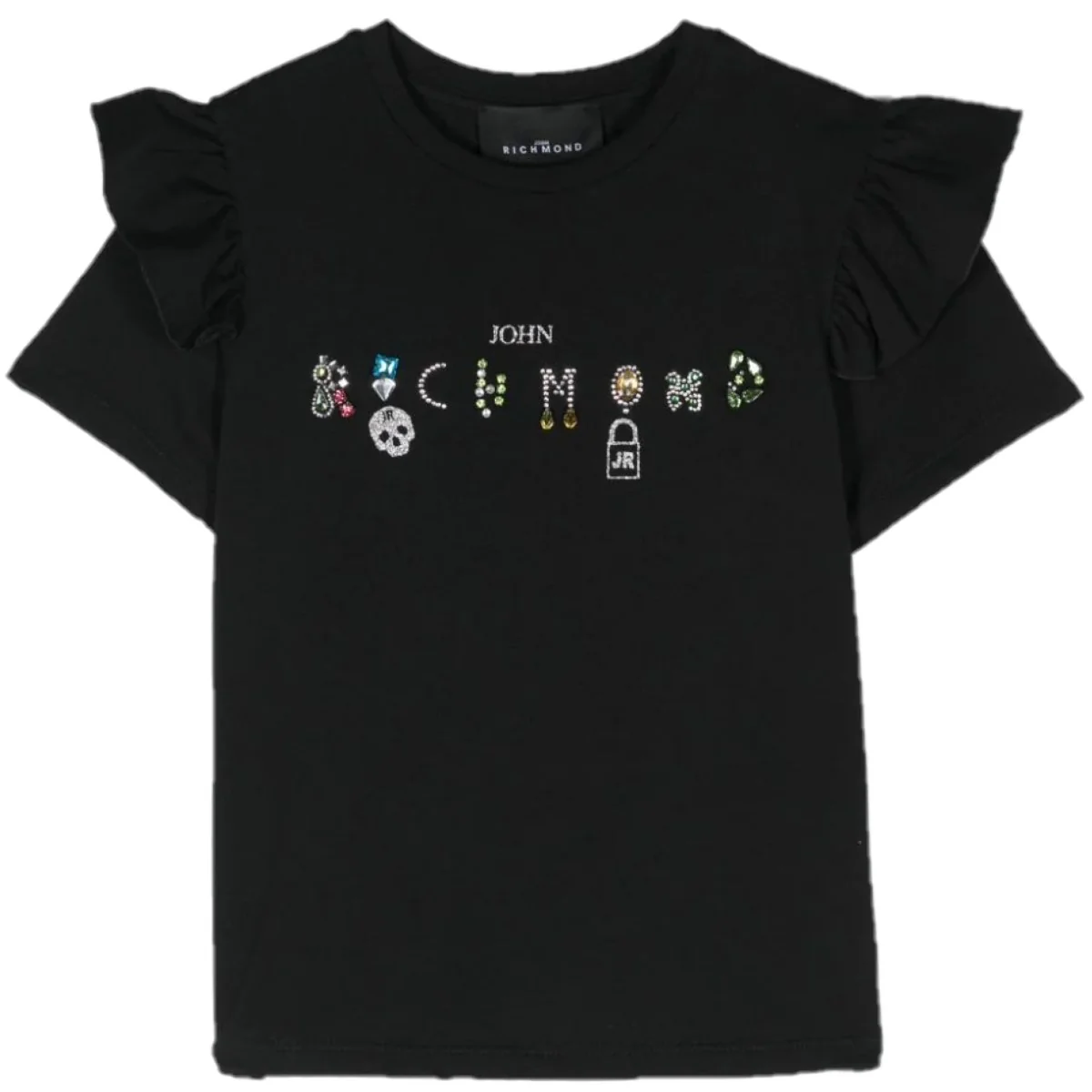 T-shirt JOHN RICHMOND in cotone modello girocollo mezza manica con logo in strass glitter e pietre .