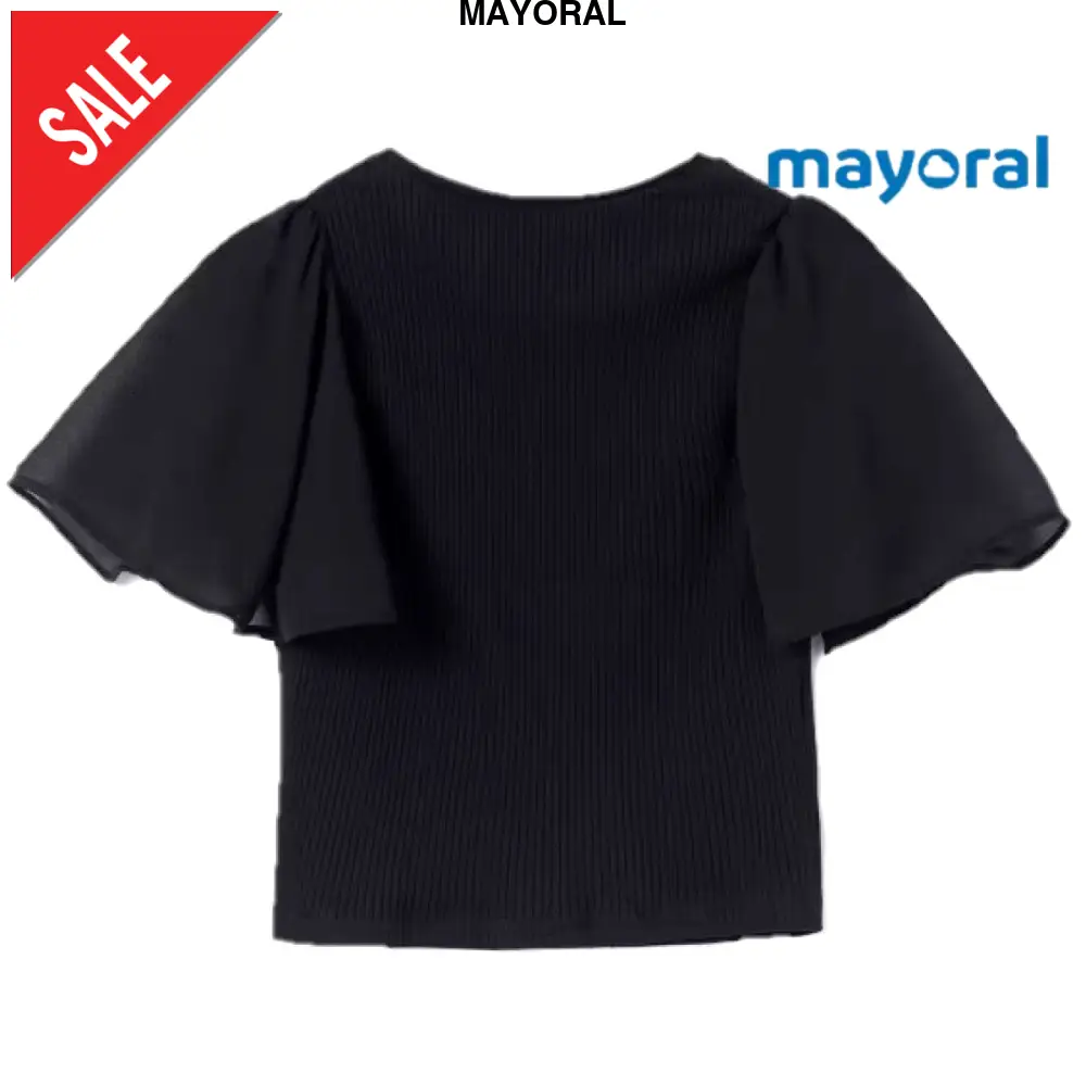 T-shirt MAYORAL in cotone a costine, modello girocollo mezza manica con velo applicato.