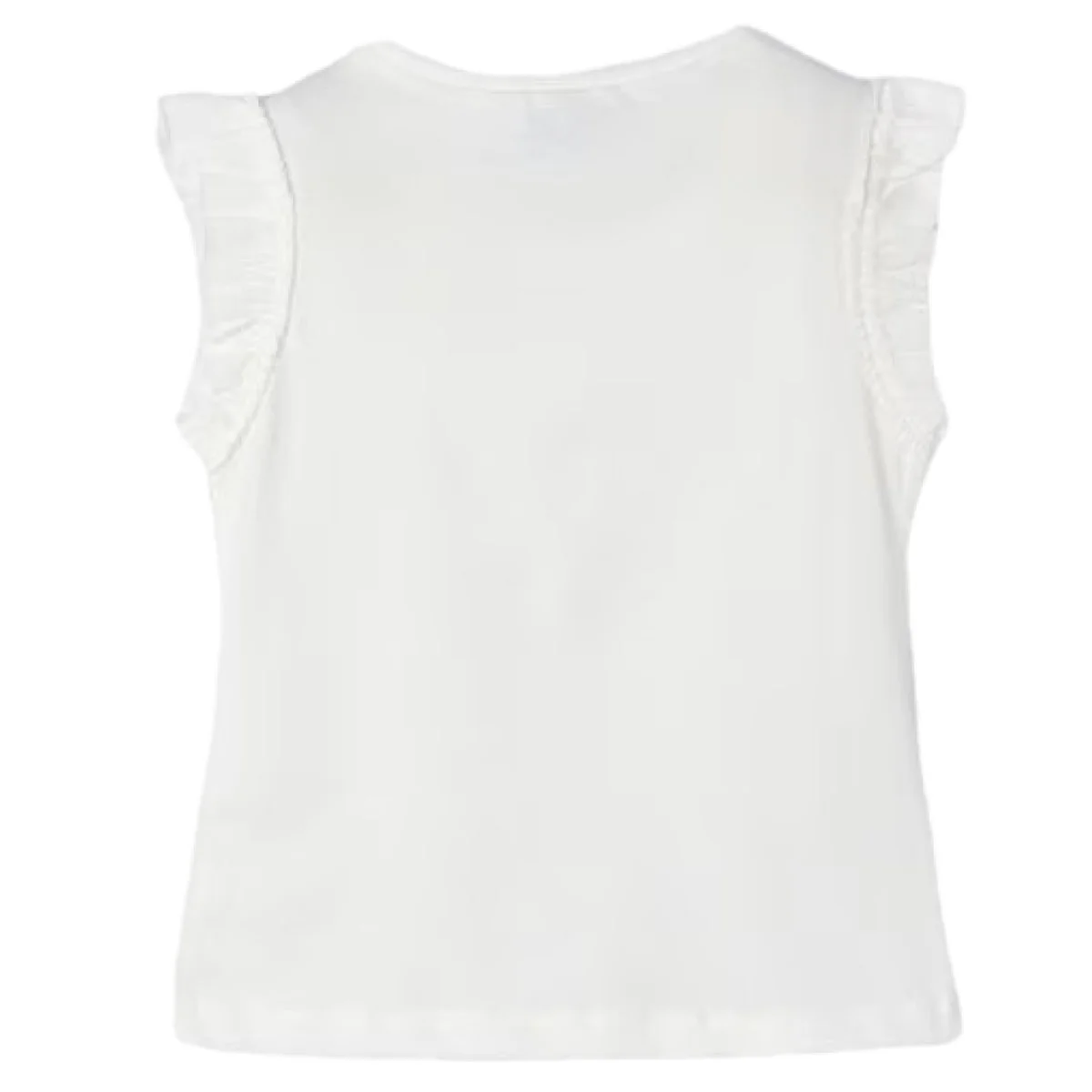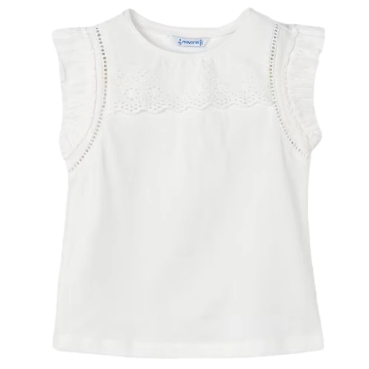 T-shirt MAYORAL in cotone con ricami e trafori applicati, rouche applicata al giromanica.
