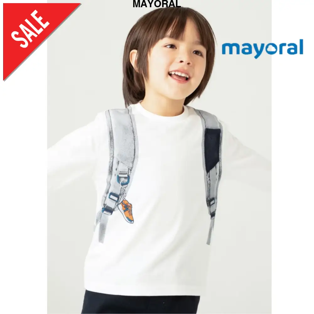 T-shirt MAYORAL in caldo cotone con stampa applicata sul lato anteriore e posteriore, rifinitura in colore e tessuto a contrasto.