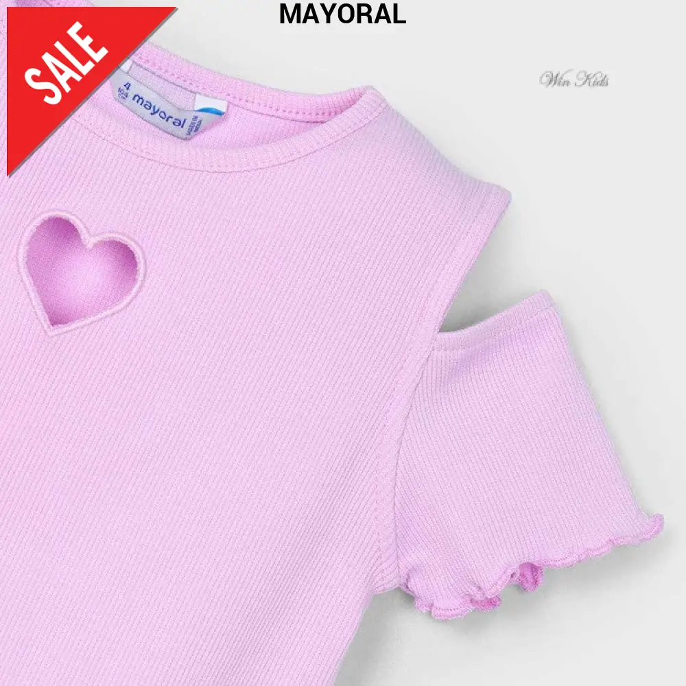 T-shirt MAYORAL in cotone a costine con cuoricino traforato.