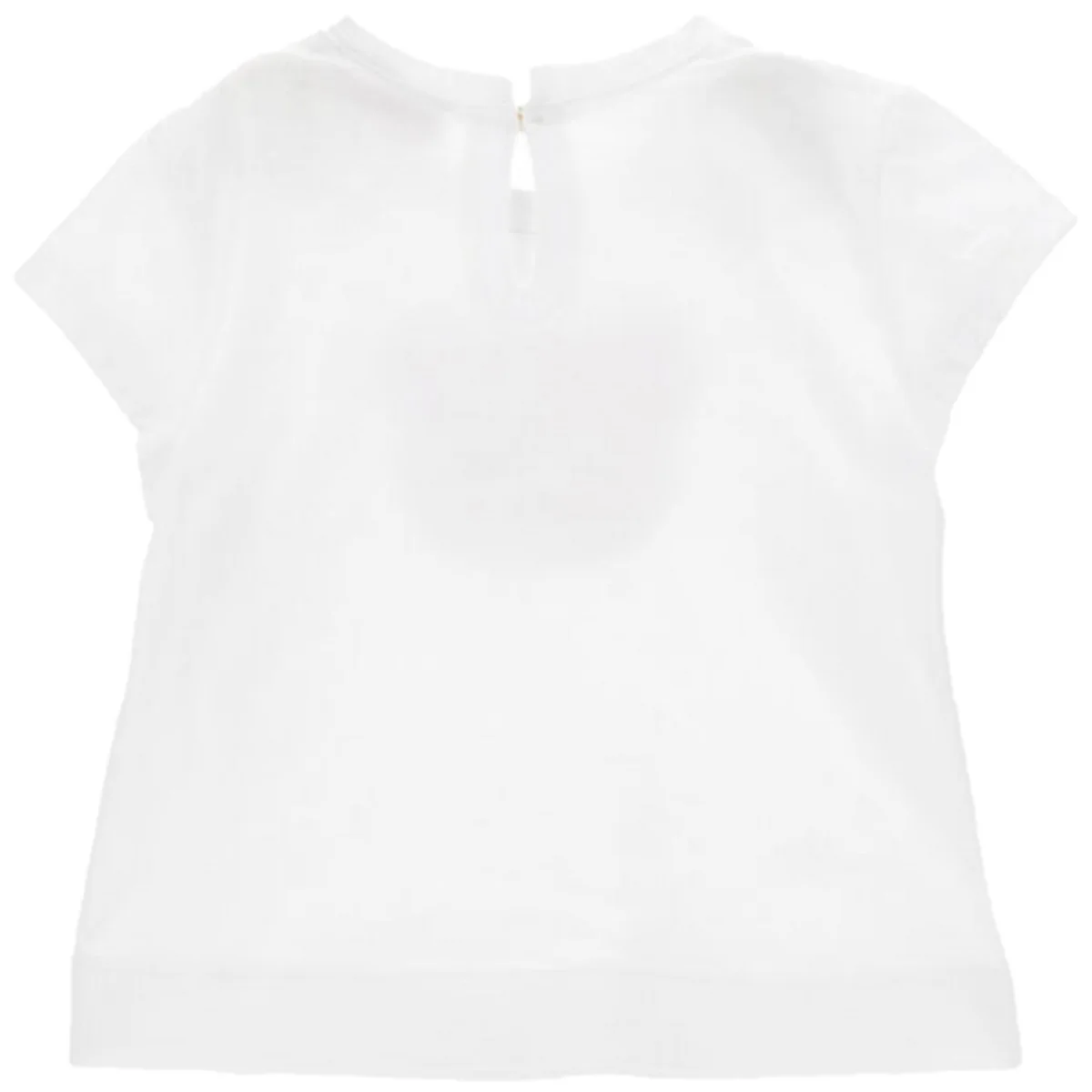 T-shirt MONNALISA in cotone con stampa, logo e strass applicati in colori a contrasto, chiusura con bottoncino sul retro.