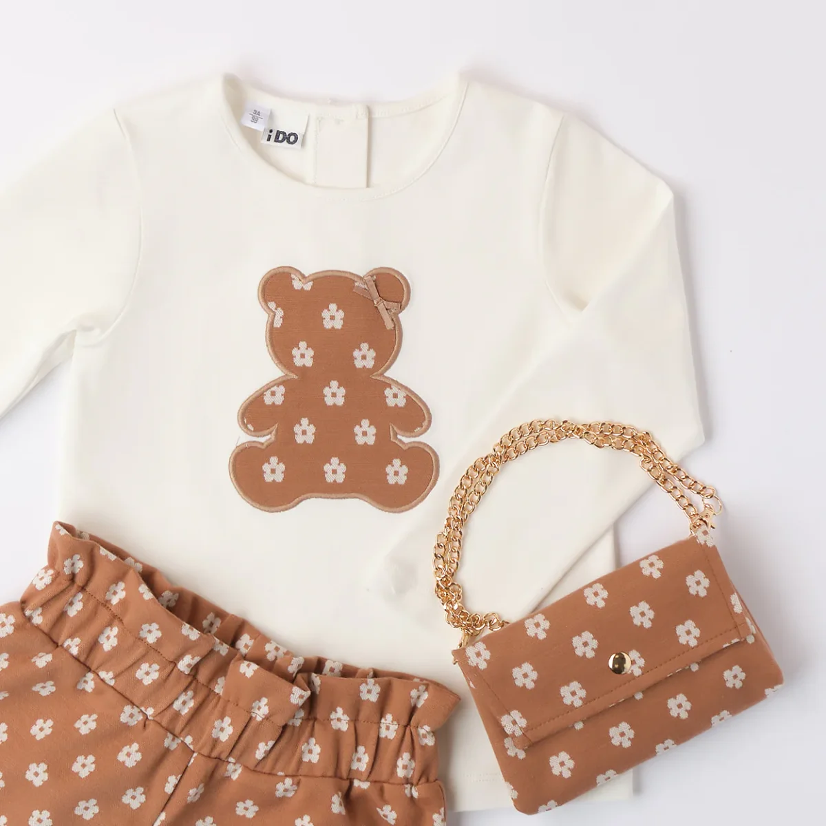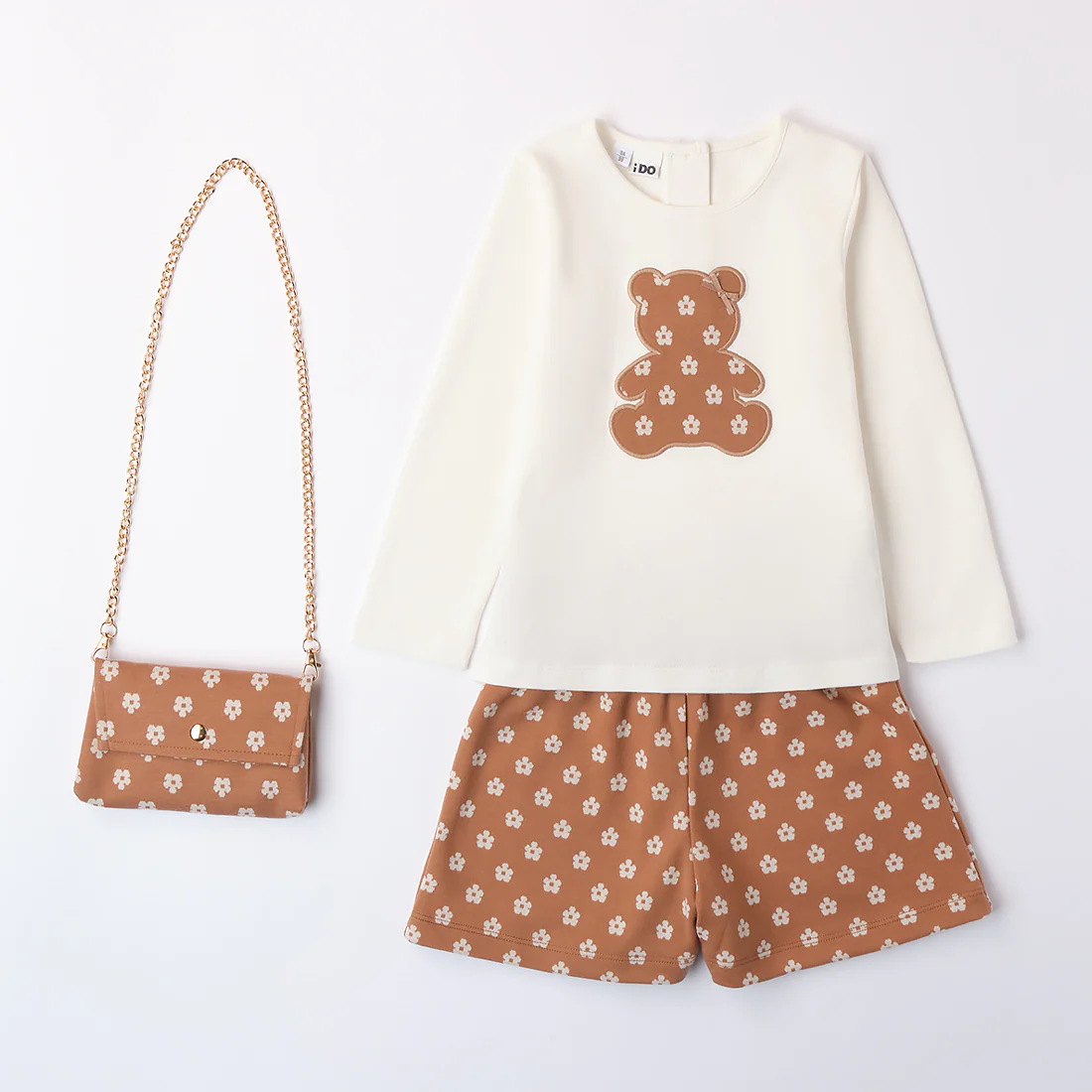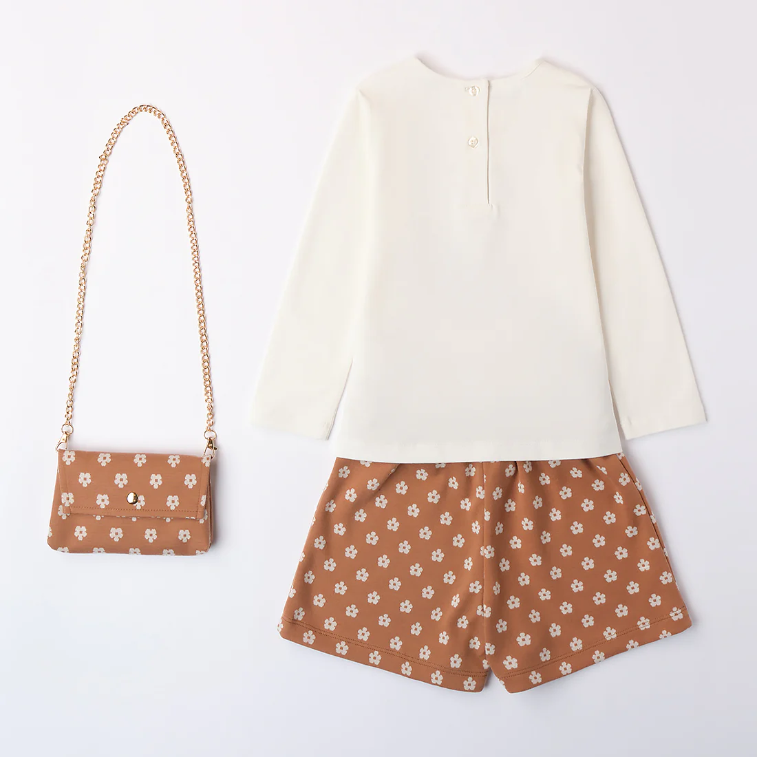 Borsetta coordinata nello stesso tessuto e fantasia dello shorts.